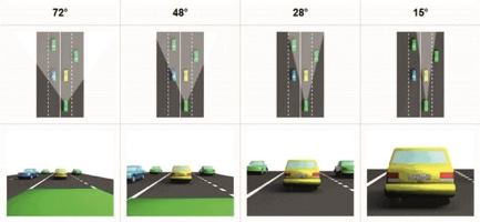 Еще более сложной становится качественная запись ночью из-за сильной дисторсии, которая характерна для фактически всех моделей с широкими углами обзора. Суть этого искажения проста: прямые линии изображаются кривыми, кроме тех, которые лежат в одной плоскости с оптической осью. Для примера, изображение квадрата, центр которого пересекает оптическая ось, имеет вид бочки при отрицательной и вид подушки при положительной дисторсии. У длиннофокусных объективов дисторсия меньше, у широкоугольных — больше. Из-за характерного месторасположения в центральной части автомобиля, объекты, которые находятся прямо перед автомобилем записываются почти без искажений. Тем не менее, все объекты на обочине, а также встречные и обгоняющие автомобили записываются в слегка искаженном виде.
