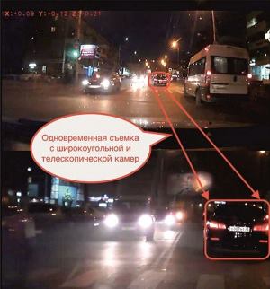 Такое решение можно считать удачным в случае необходимости выбора видеорегистратора с хорошей ночной съемкой. Качество широкоугольный камеры сложно назвать выдающимся, оно находится на уровне съемки других участников сравнения, но картинка со второй полностью компенсирует возможные сложности с разбором номеров впередиидущего автомобиля или других удаленных деталей.