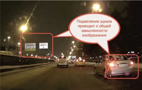 В процессе записи устройство производит программное подавление шумов – и уже в таком виде видео доходит до пользователя. При взвешенном использовании этой возможности, результат действительно становится лучше, но во множестве случаев подобная обработка начинает вносить негативные последствия на видео, что проявляется в «замыливании» картинки, отсутствии достаточной резкости и детализации.