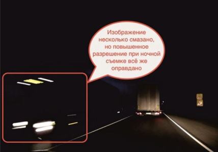 Сложноразличимыми остаются номера машин только на значительном отдалении от точки съемки. Имеет место некоторая смазанность по всему кадру при съемке на неосвещенных участках дорог.