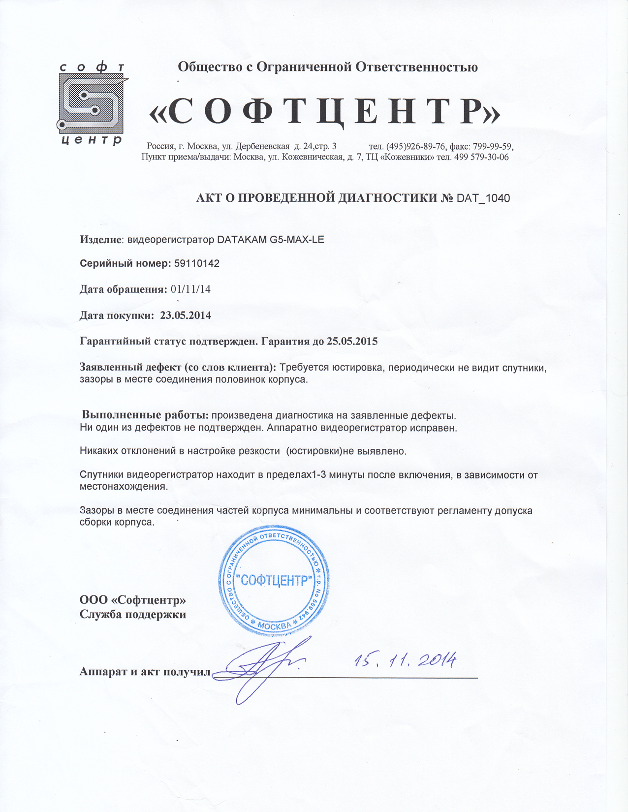 3. Специально выкладываю скан акта, из СЦ на Павелецкой, куда я недавно сдавал ВР на юстировку и настройку GPS-модуля. И ведь им ничего не докажешь. Я разговаривал по телефону с мастером и он мне заявил, что юстировку делают на заводе и на всю жизнь. ВР не подлежит юстировке в условиях СЦ. Вот такие специалисты в СЦ на Павелецкой. Если сюда заглядывают ребята из Датакама, пусть посмеются. :D