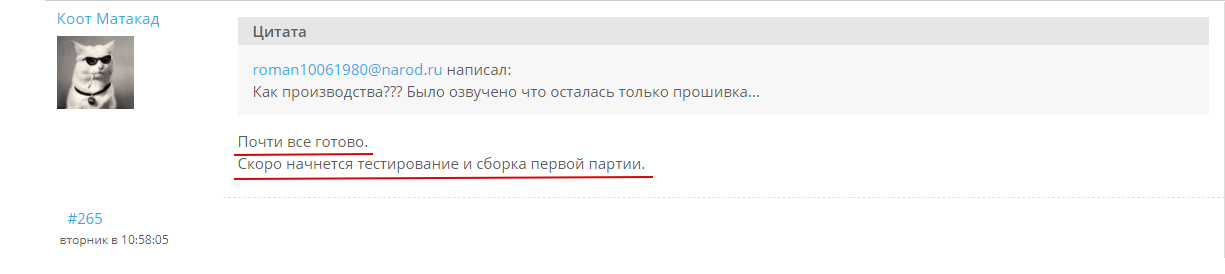 Да, люди надеются, ещё и деньги шарлатанам из ДК так вот запросто отправляют в никуда и без всяких гарантий А тем временем производство DUO ещё даже не начиналось, хотя после объявления на сайте ДК прошло уже четыре с половиной месяца, в ДК теперь даже сроки поставок не называют, одним словом как только так сразу.