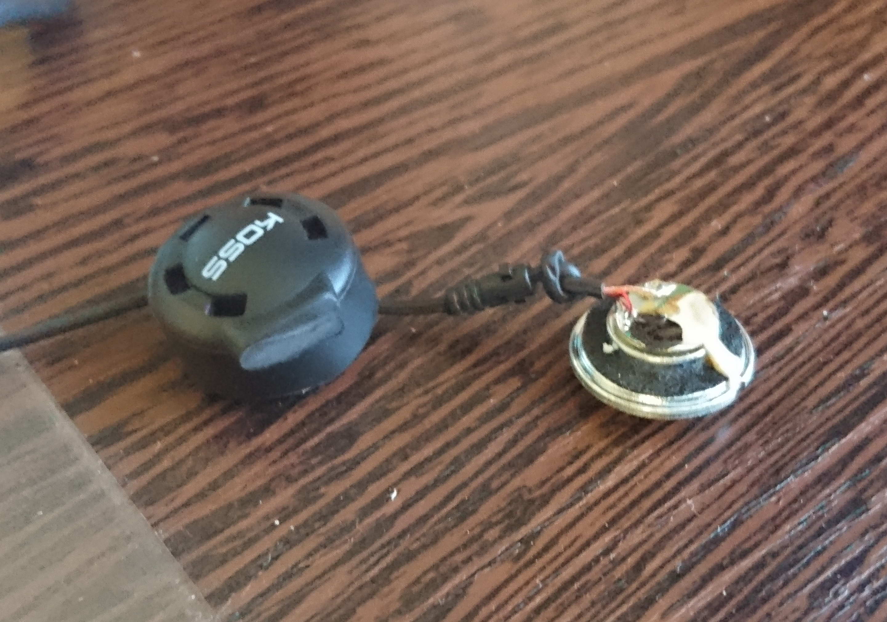 Найти аналогичный малогабаритный динамик не переставлялось возможным, поэтому в качестве донора подошел динамик от наушника KOSS (28 Ом). Припаял, проверил. Звук раза в 2 тише чем с родным динамиком. Но слышно.