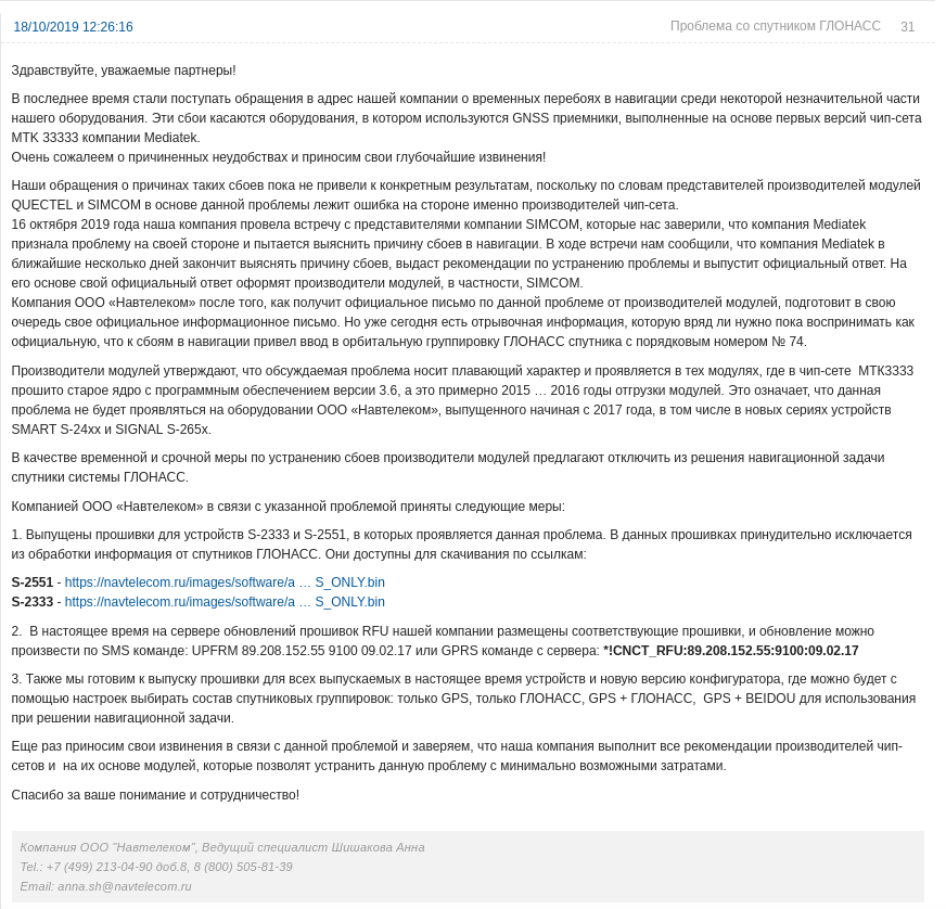 Обновление прошивки в модуле GPS при периодических потерях сигнала пост #6964 от gritaro