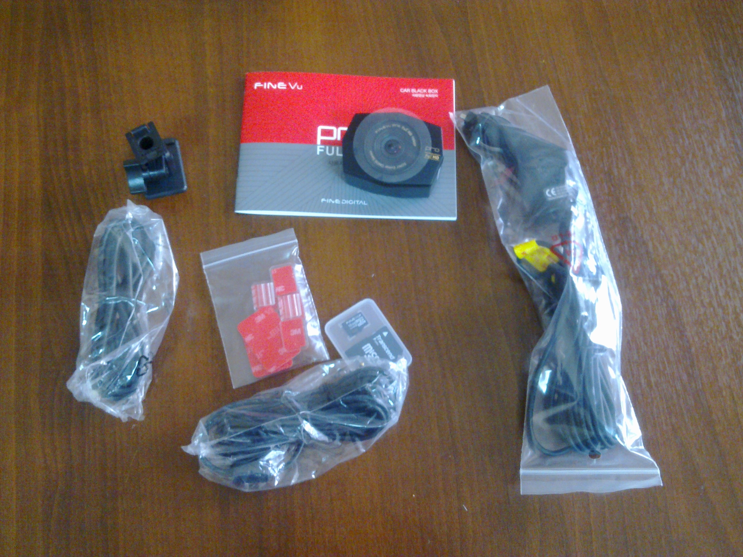 5. Ну вот и пришел мне прямо из Корее мой регик:) Ниже фото посылки и содержимого. В пакетиках карта 16 гб, крепление ВР, двусторонний скотч, мануал, питание от прикуривателя, кабель для видео(не понятно куда его подключать), кабель к компу. Сразу обратил внимание на крепление...оно не на присоске, а на скотче (к стеклу). Сам ВР крепится на слабую защелку, которая скорее всего сломается!