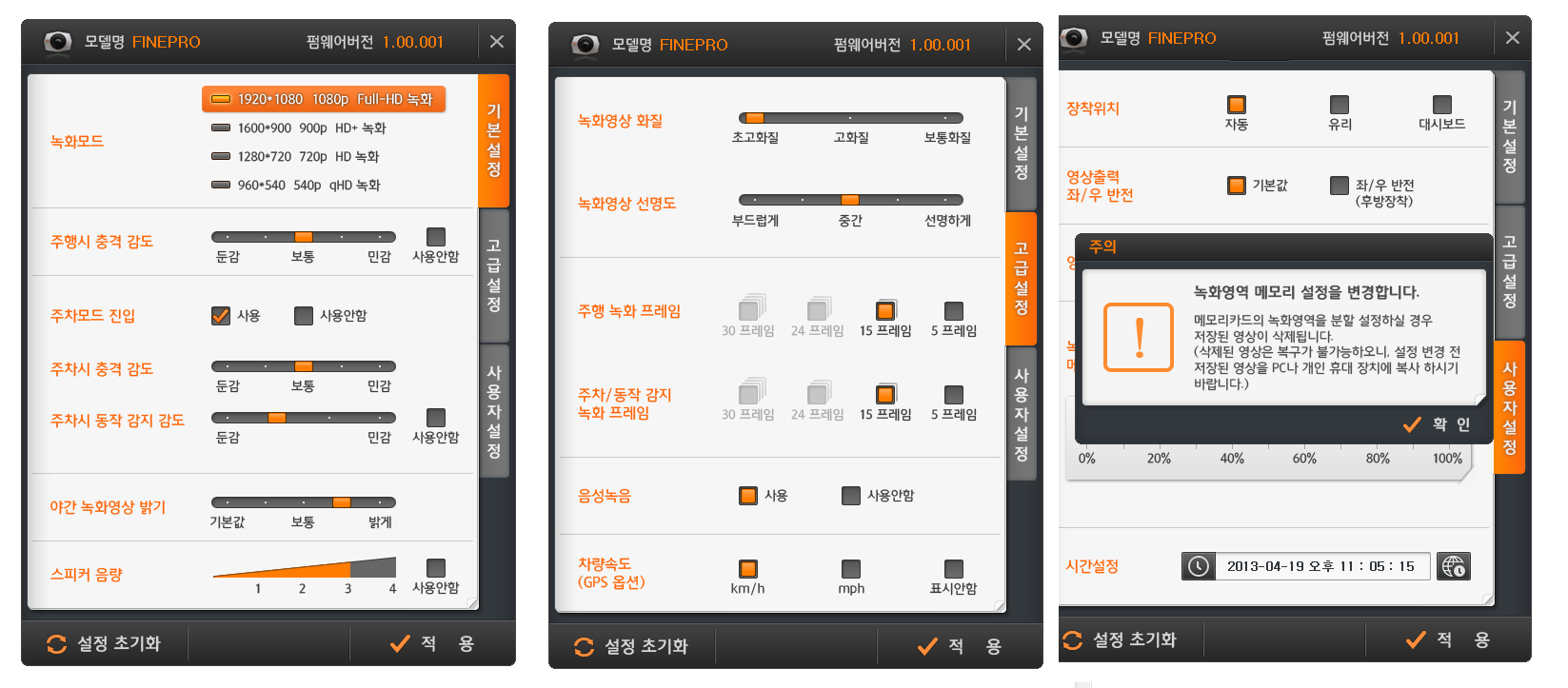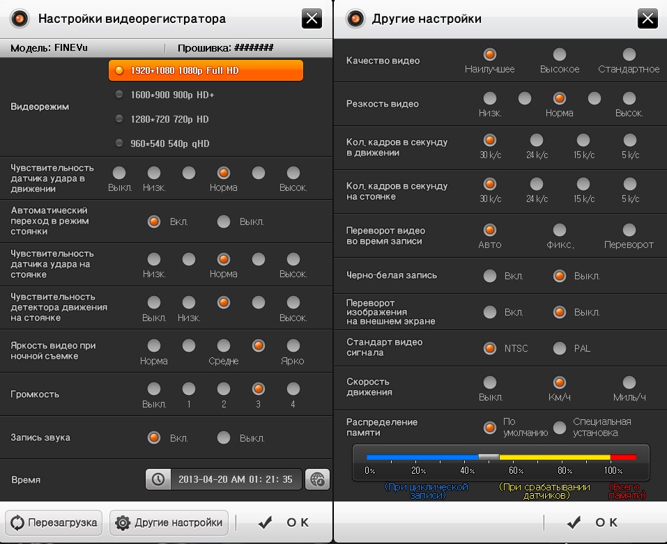 1. FineVu PRO режимом съемки 1080p (FullHD) позволяет теперь снимать в четырех режимах: