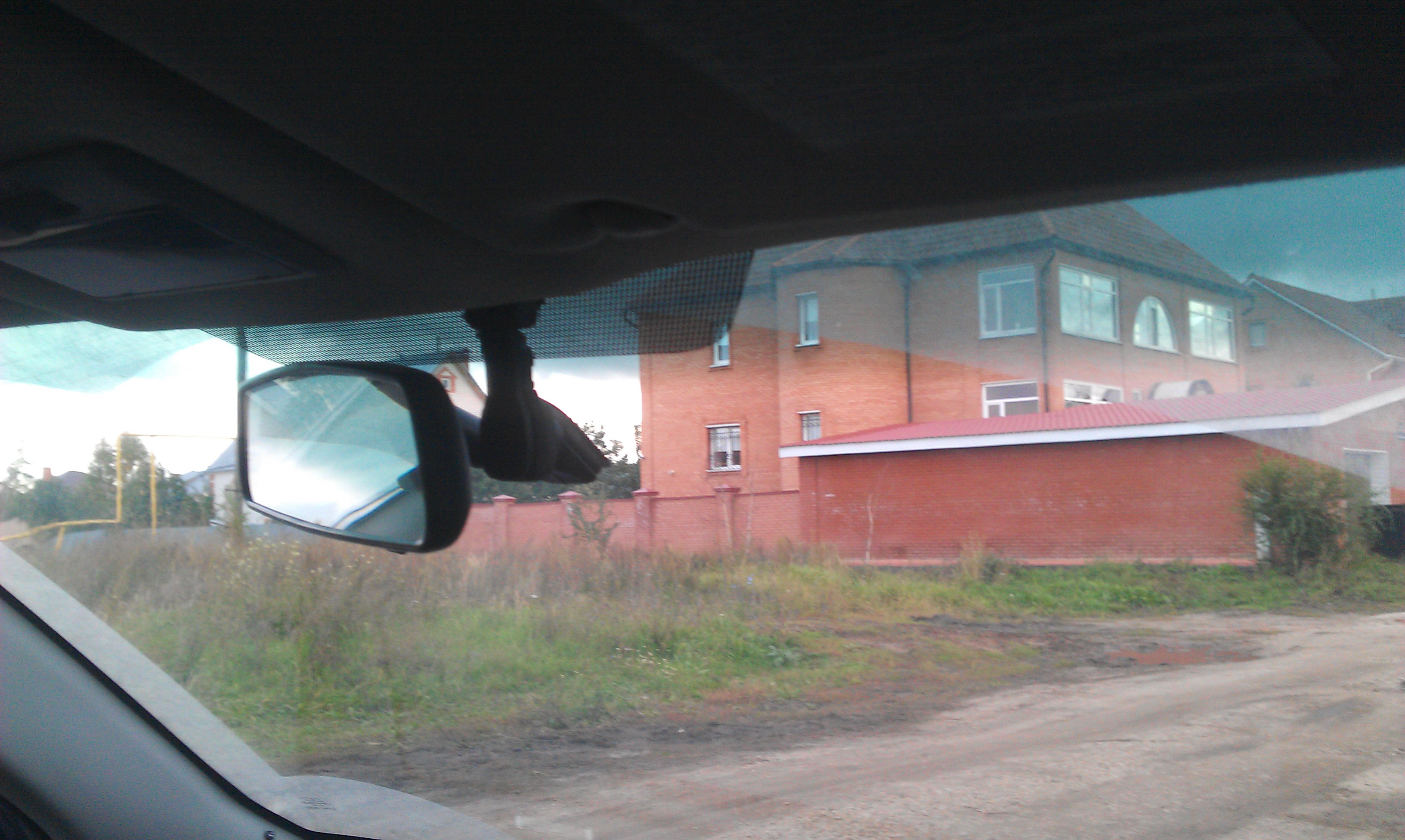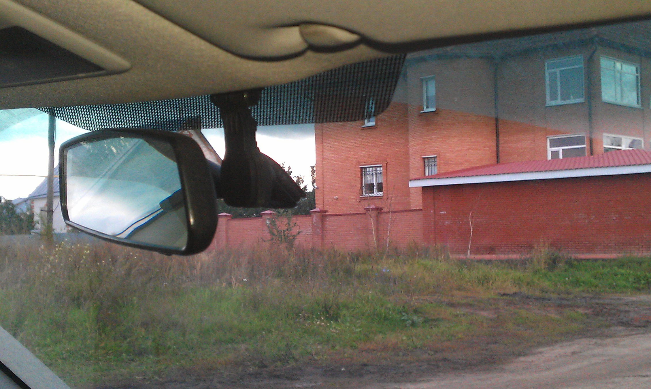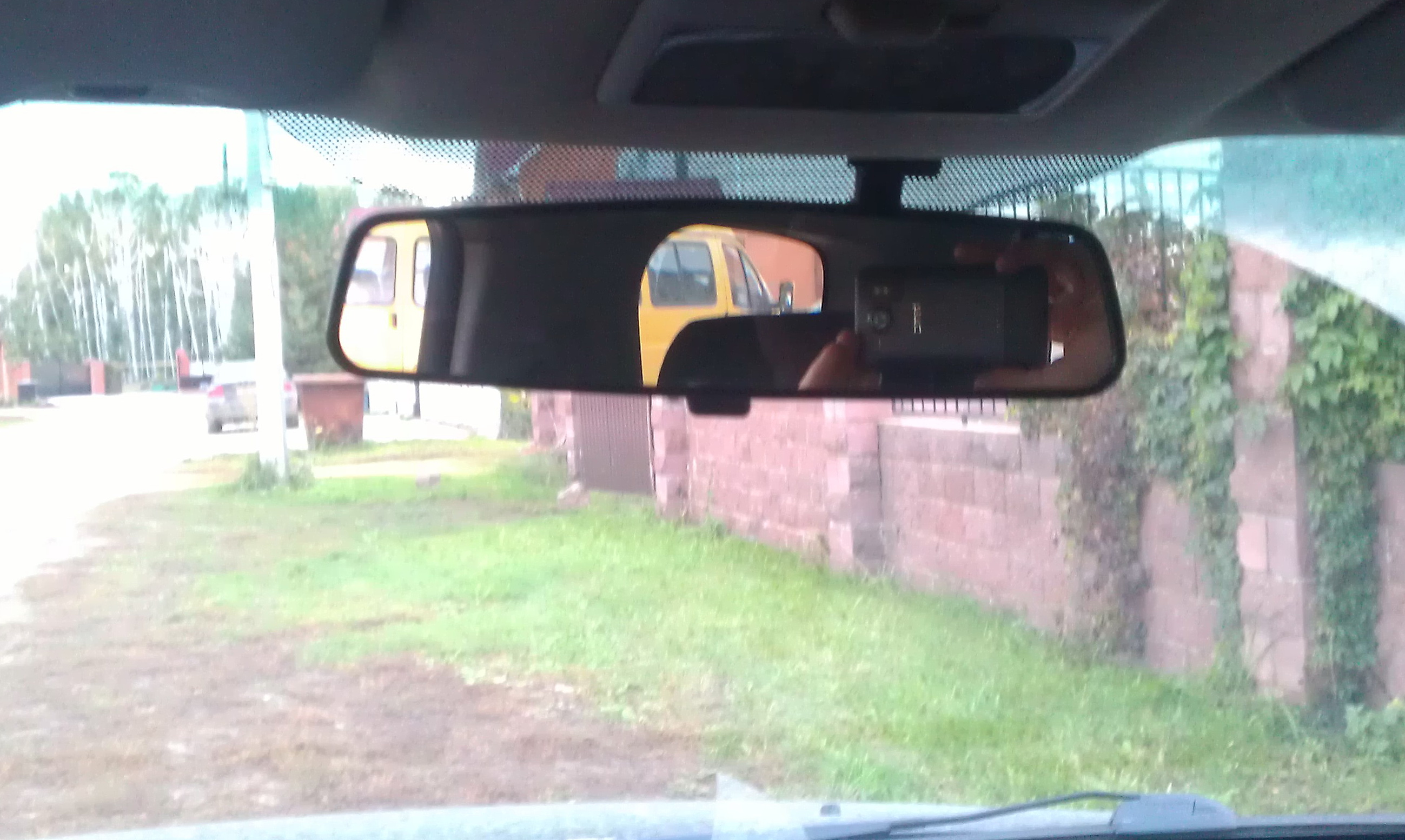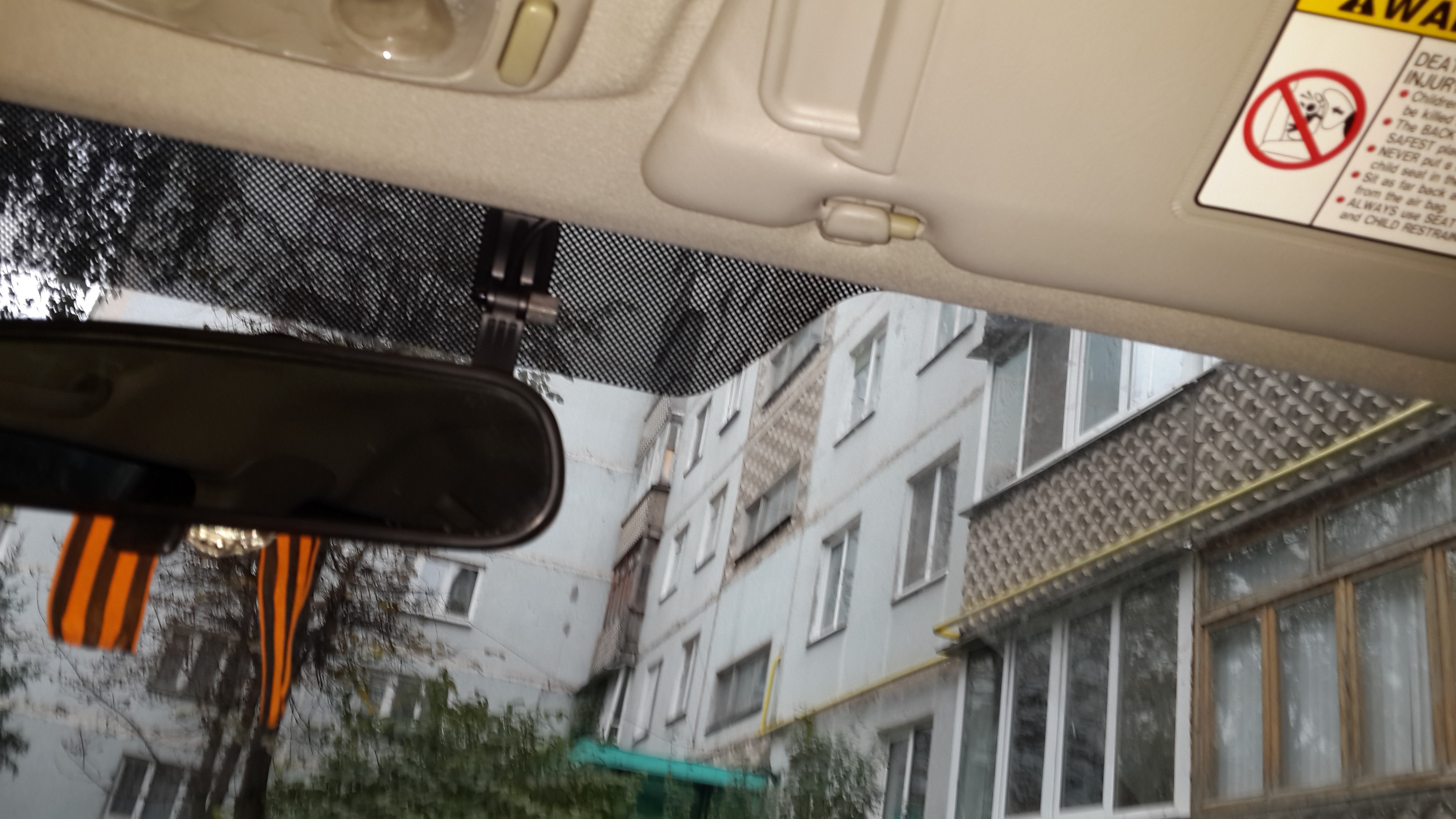 Установка камеры была произведена штатными средствами, липучкой на стекло, этот вариант меня вполне устроил. Только край ножки камеры уходит под обшивку крыши салона и дополнительно ею прижимается. Из особенностей расположения - минимальная заметность со стороны водителя.