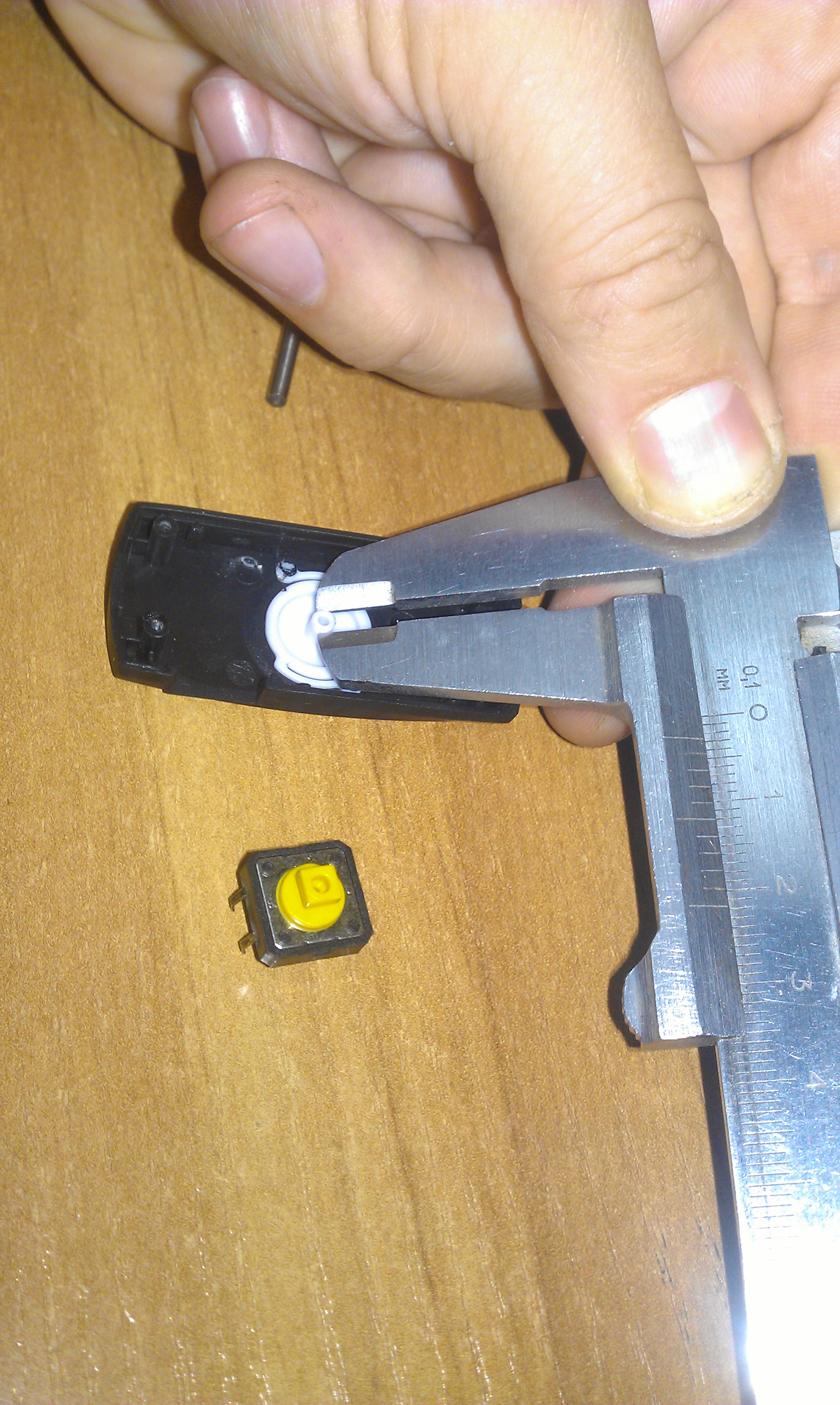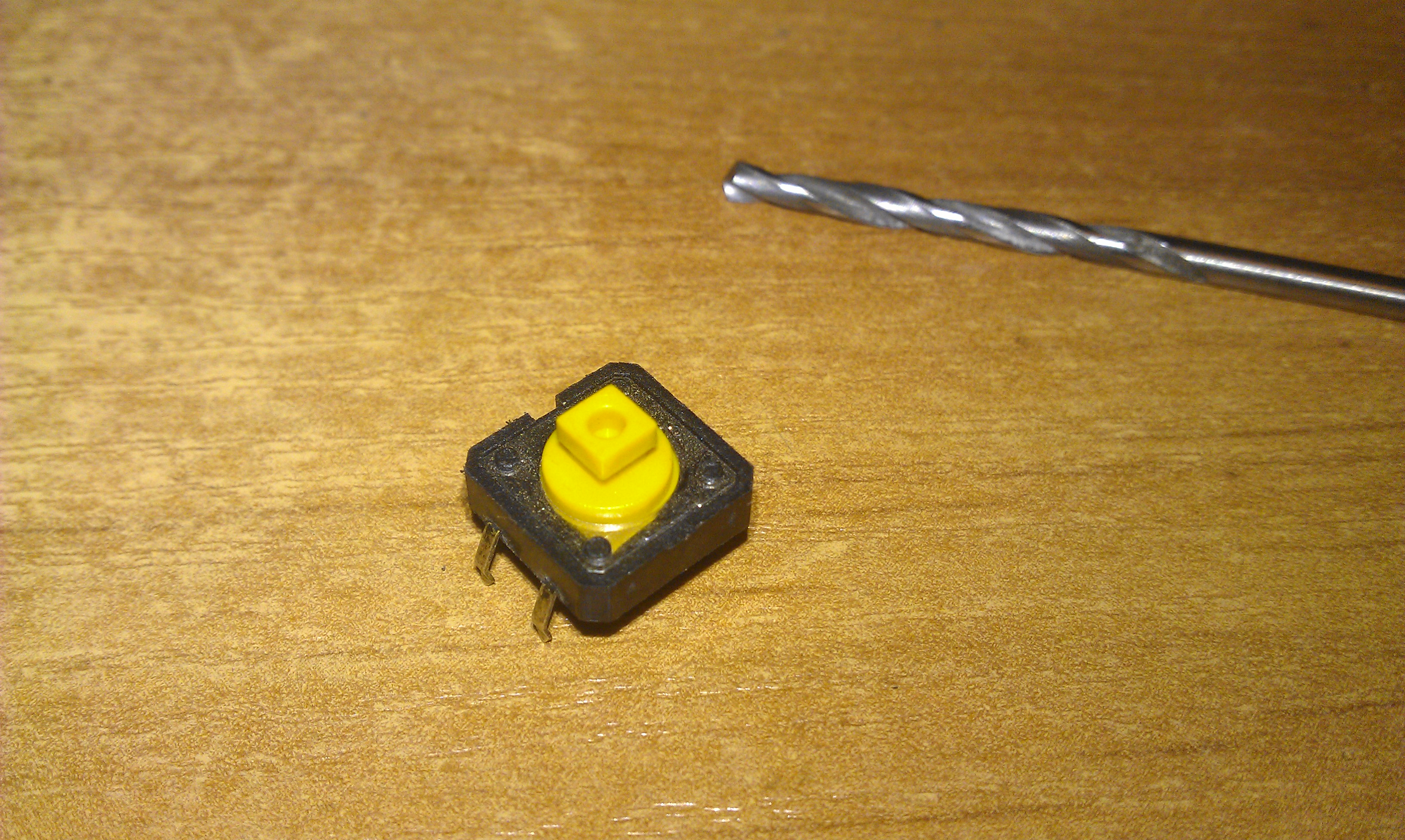Кнопку в микровыключатель было решено вклеить, слегка рассверлив посадочное место в штоке выключателя (изначально отверстие там есть с момента изготовления, так что с центровкой проблем не возникло)