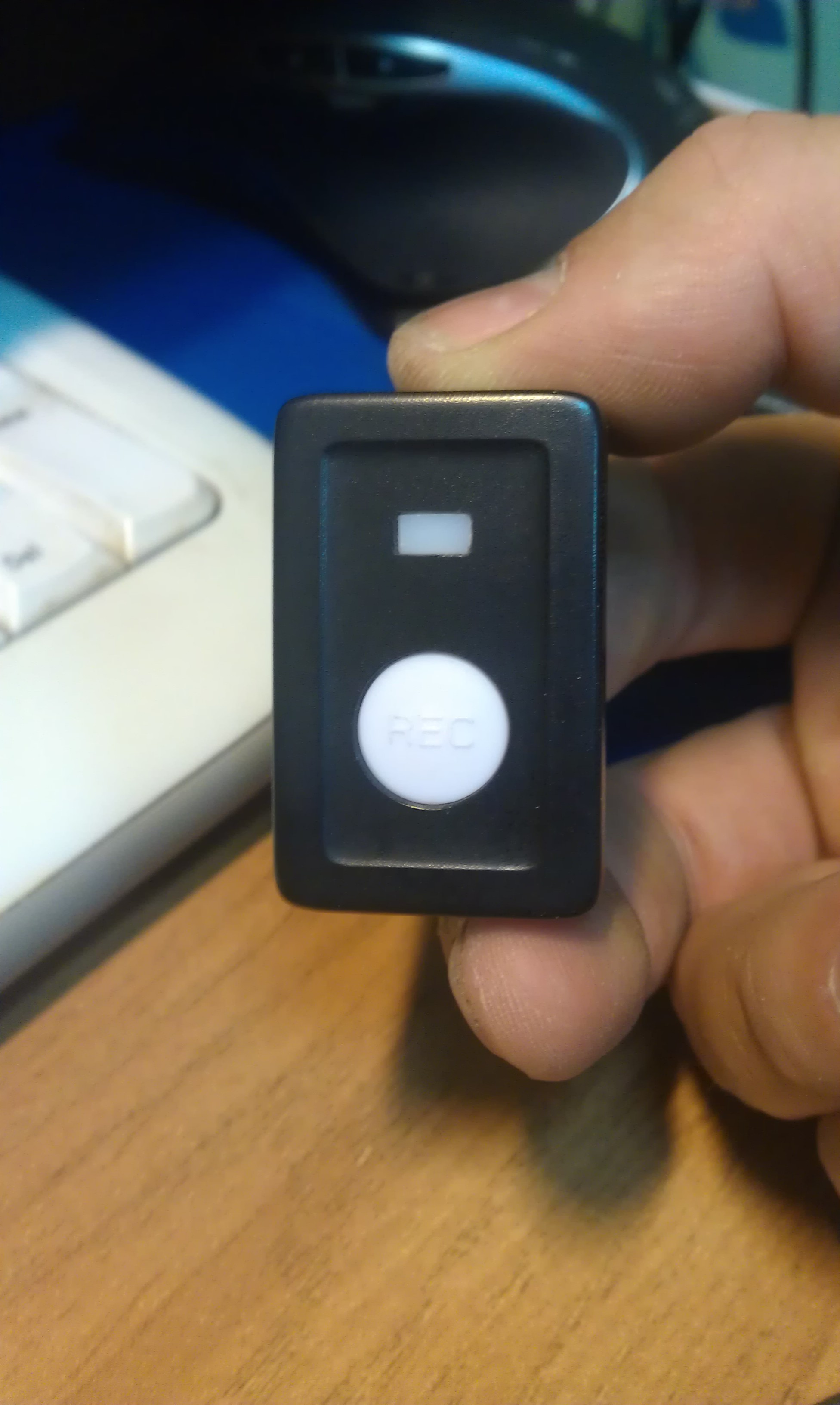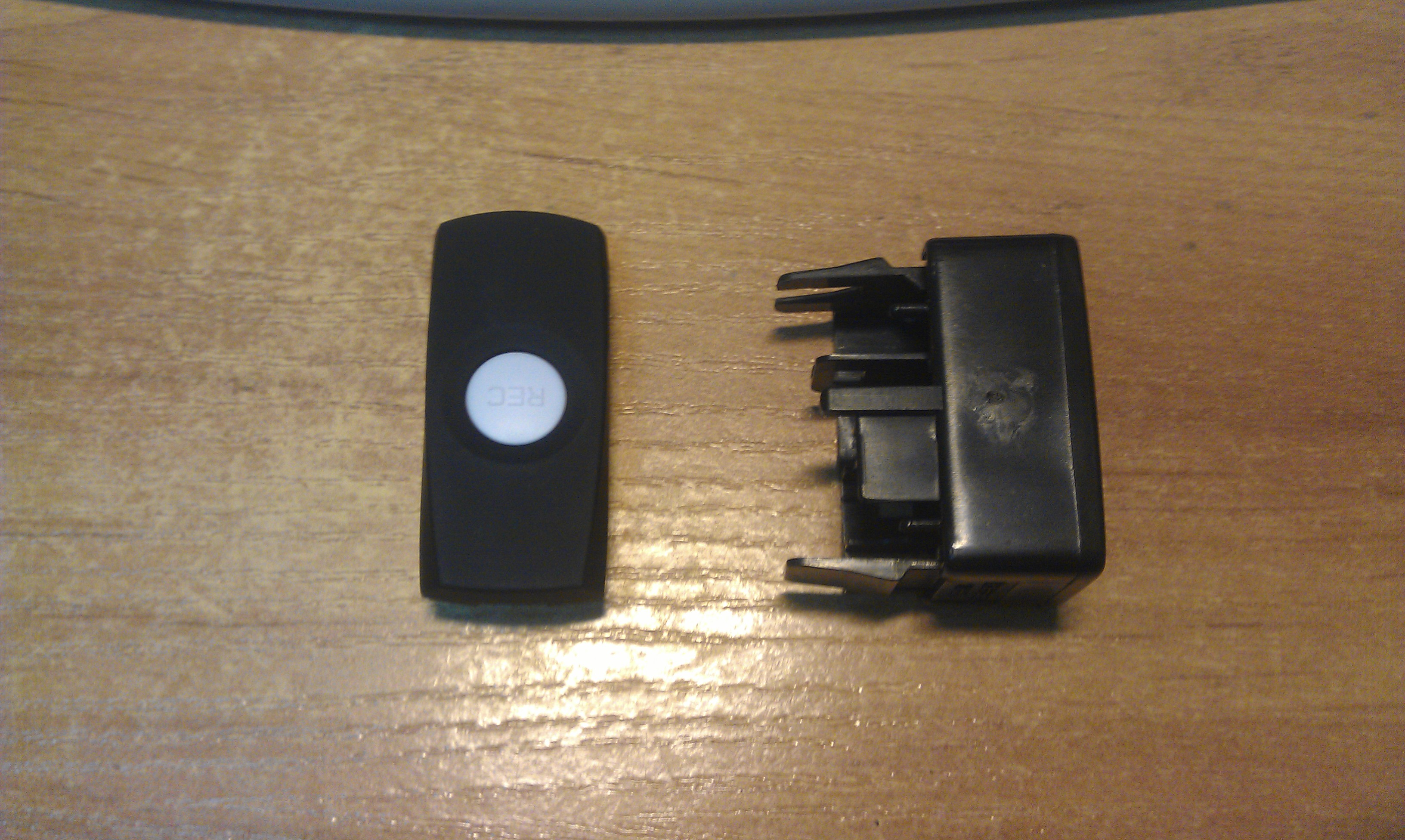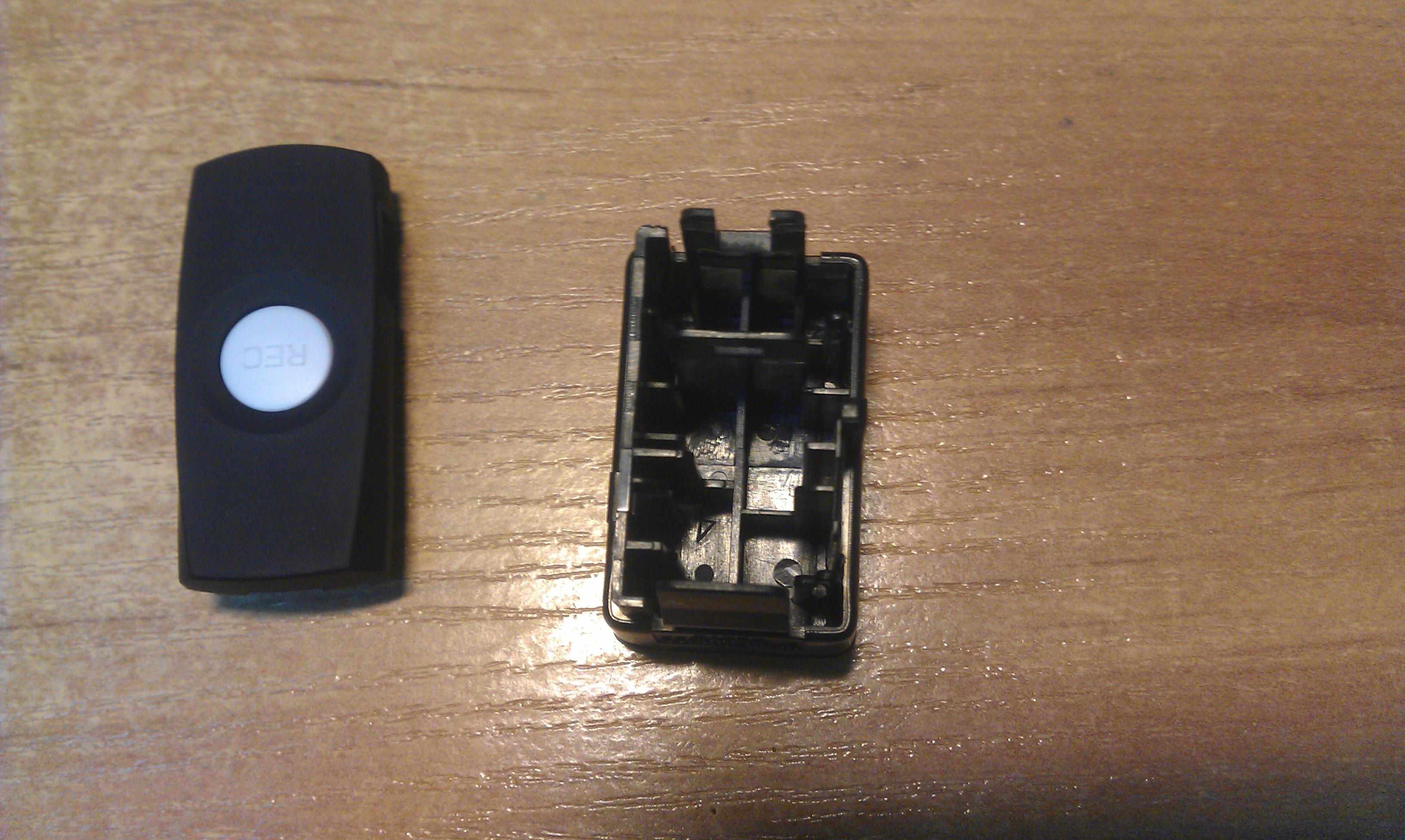 Таким образом вся проводка спрятана. Кнопка тоже спрятана, но сохранена индикация записи и функционал. Правда при автоматическом включении/выключении записи, включенной циклической записи и детекторе движения, гораздо полезнее на кнопку было бы сделать функцию защиты файла от перезаписи. Так как при такой конфигурации необходимость включения/отключения записи кнопкой просто отпадает.