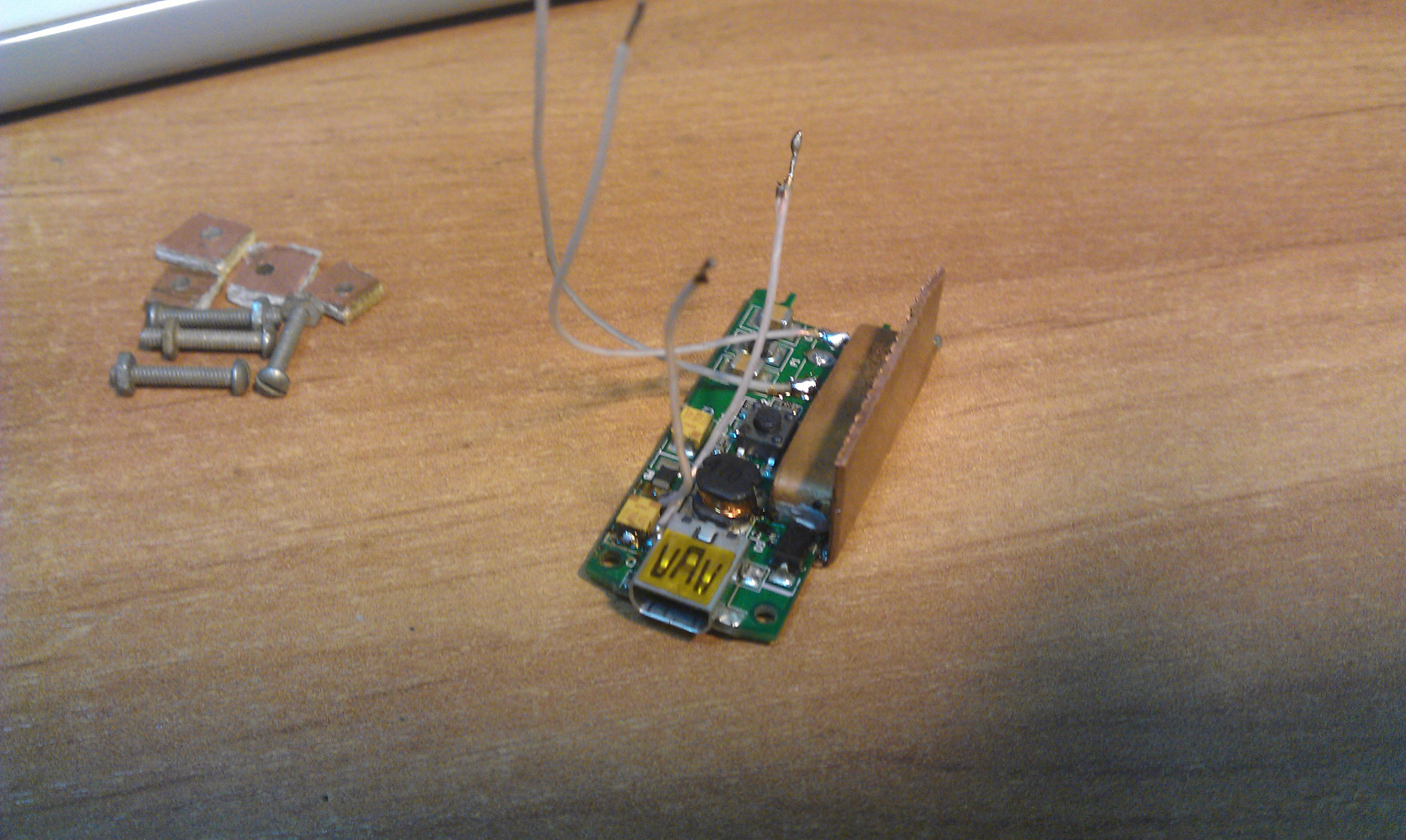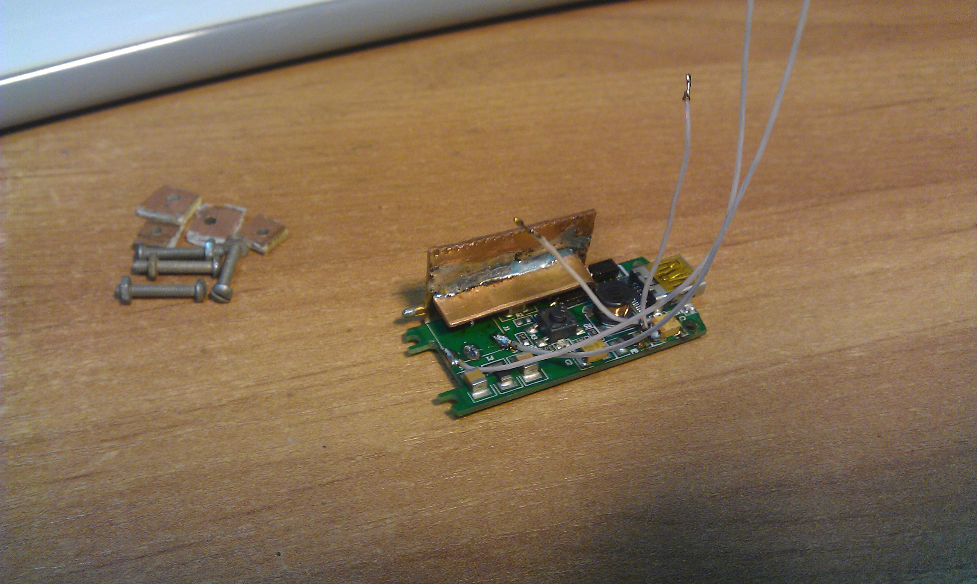 Для этого на микросхему-стабилизатор , со стороны ее заземляющих ножек, через которые и должно идти основное охлаждение, была припаяна медная г-образная пластина.