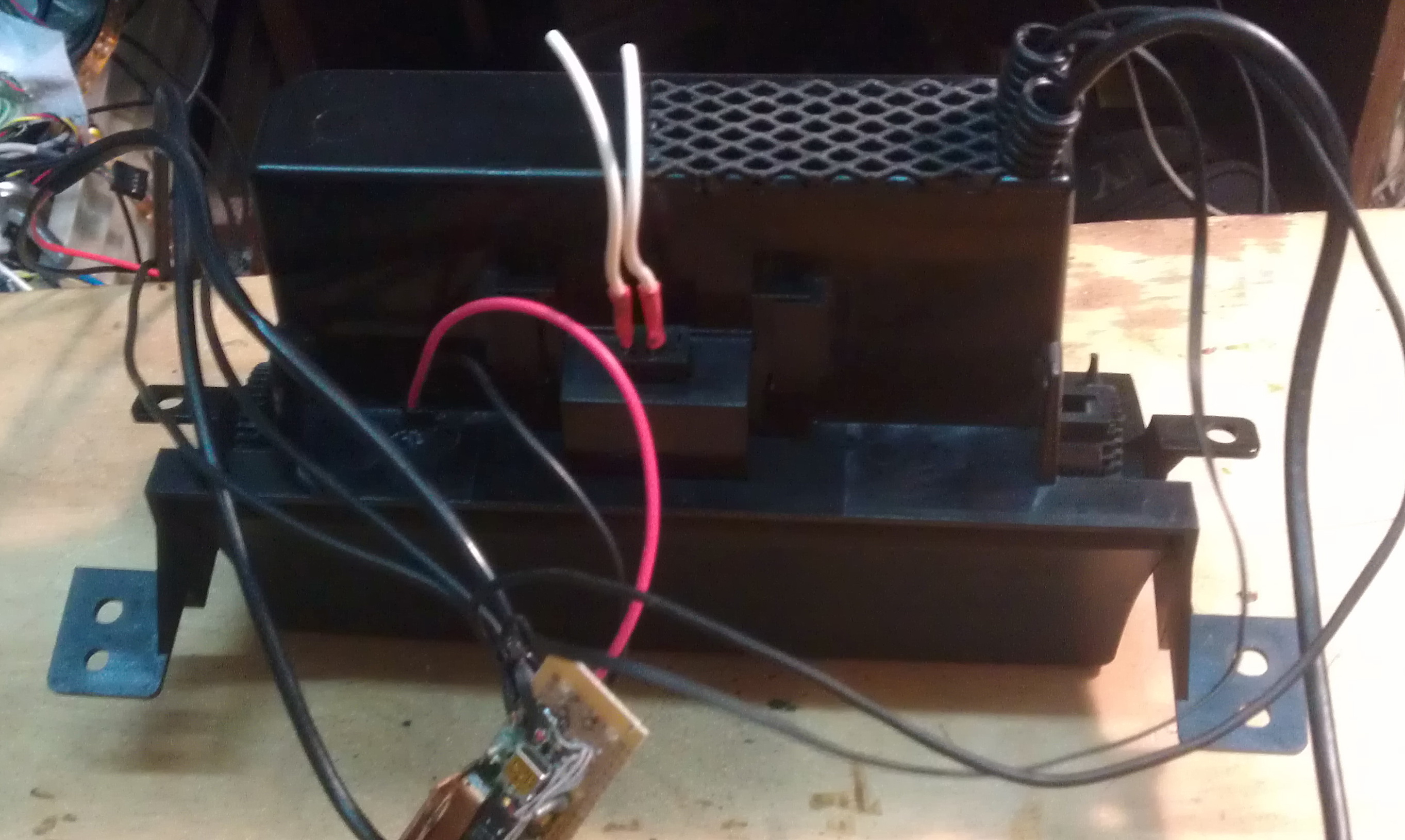 При первой сборке (ещё с другим ВР) под потолком был установлен тройник со стандартными автомобильными разъемами, который был доработан так, чтобы каждый разъем включался отдельно, от своего тумблера. Это было сделано для того, чтобы не резать провода питания ВР, РД, и навигатора на случай гарантии. (и не зря, т.к. предыдущий ВР пришлось сдать по гарантии).