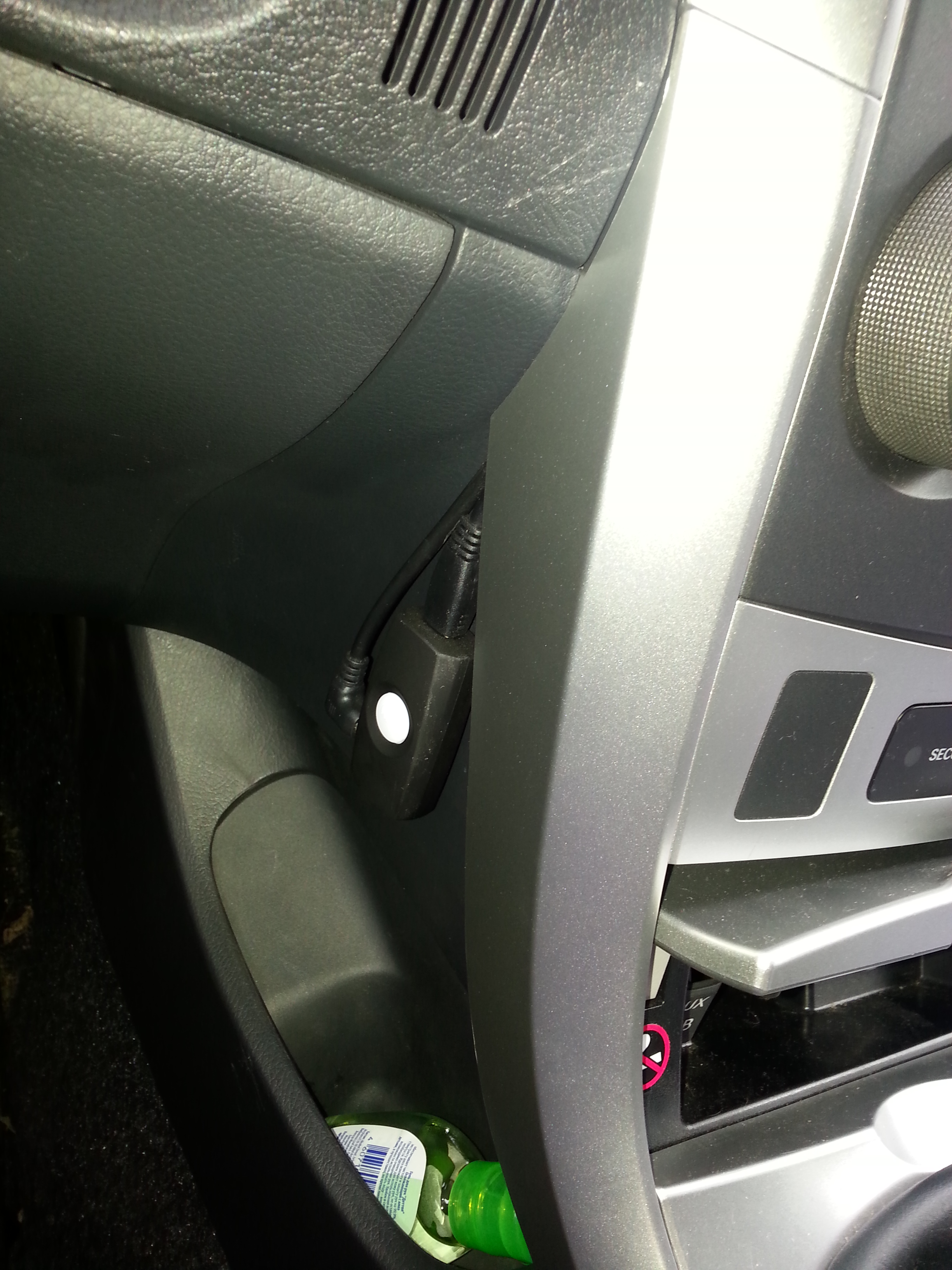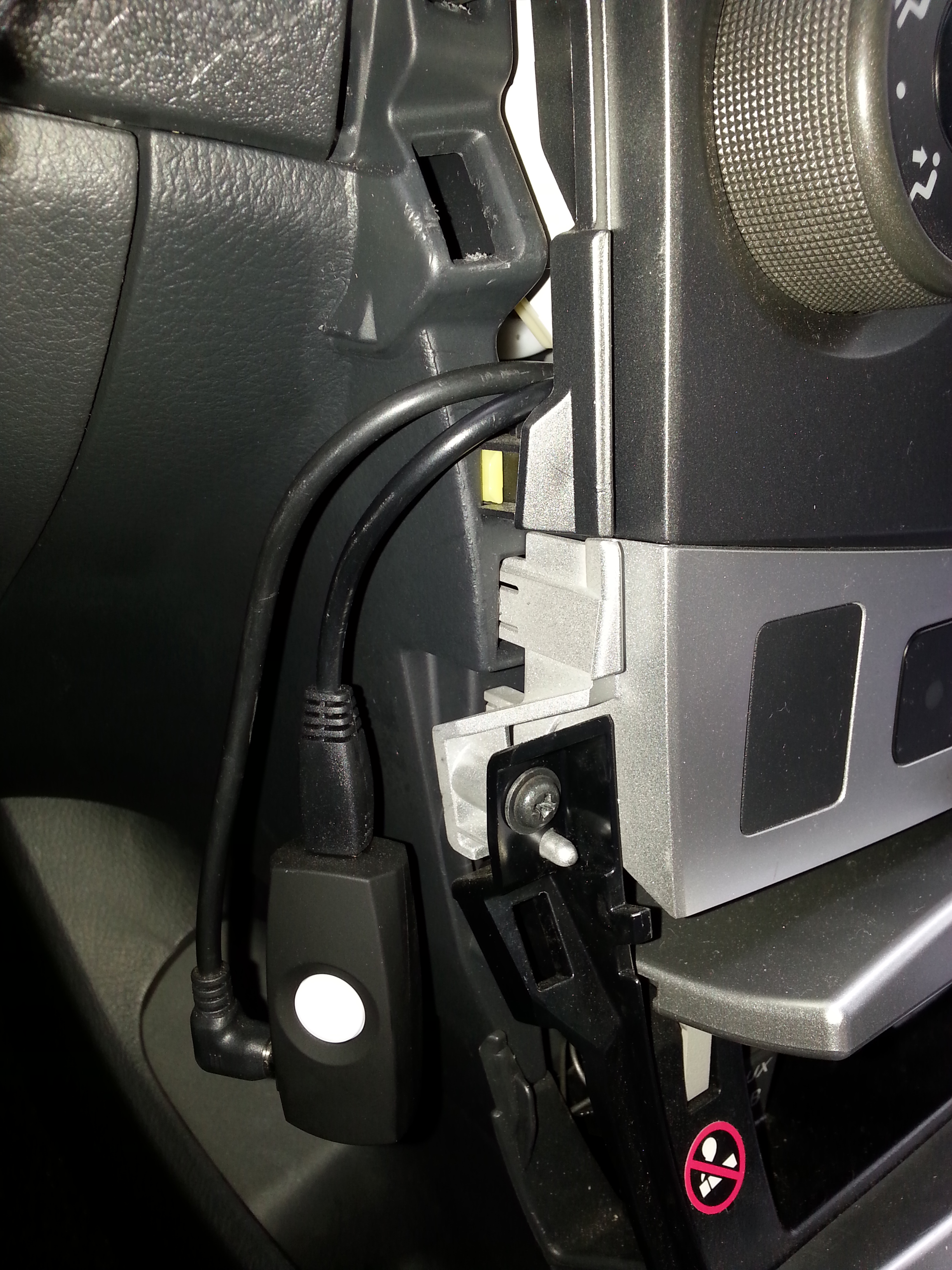 USB провод между блоком регистратора и кнопкой управления пропущен за центральной консолью.