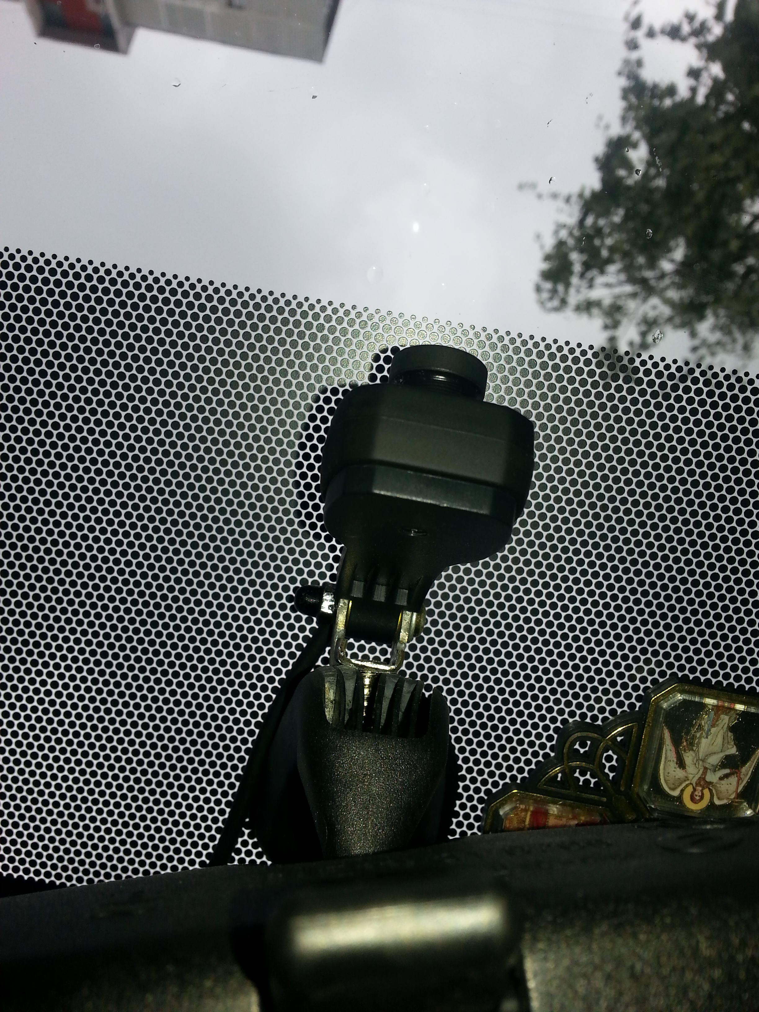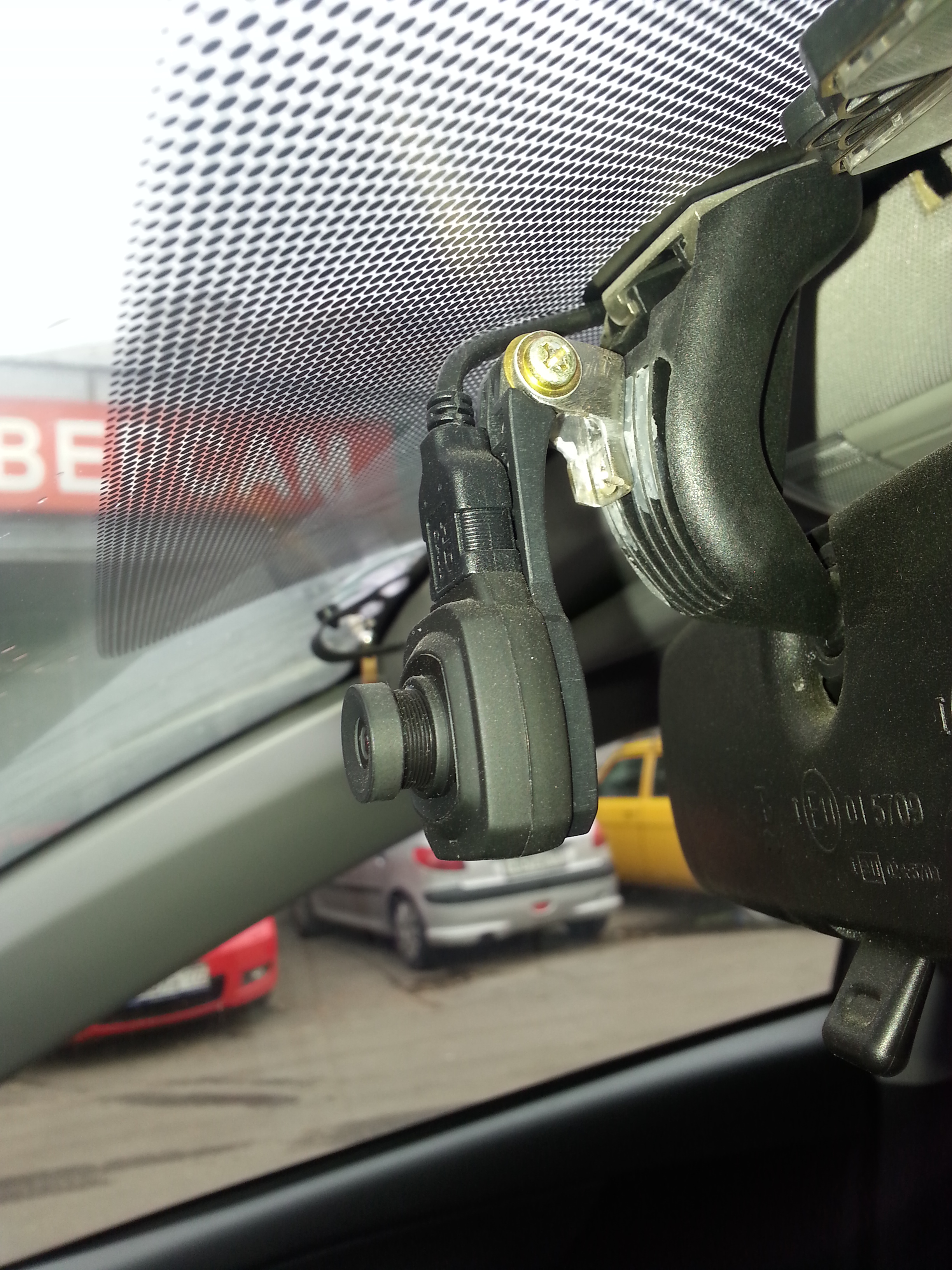 Итак, само устройство Axiom Car Vision 1000 используется где-то с лета 2013 года, и в конечном итоге я решил немного поэкспериментировать и запихать камеру в зеркало заднего вида, тем более должным образом Axiom не был установлен.