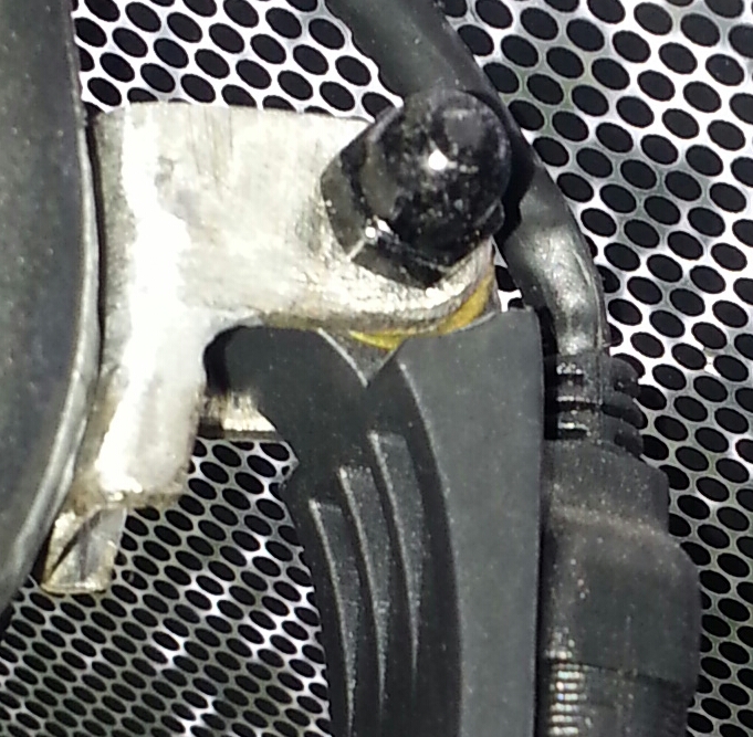 далее такой же фиксатором крепим кабель в углу лобового стекла