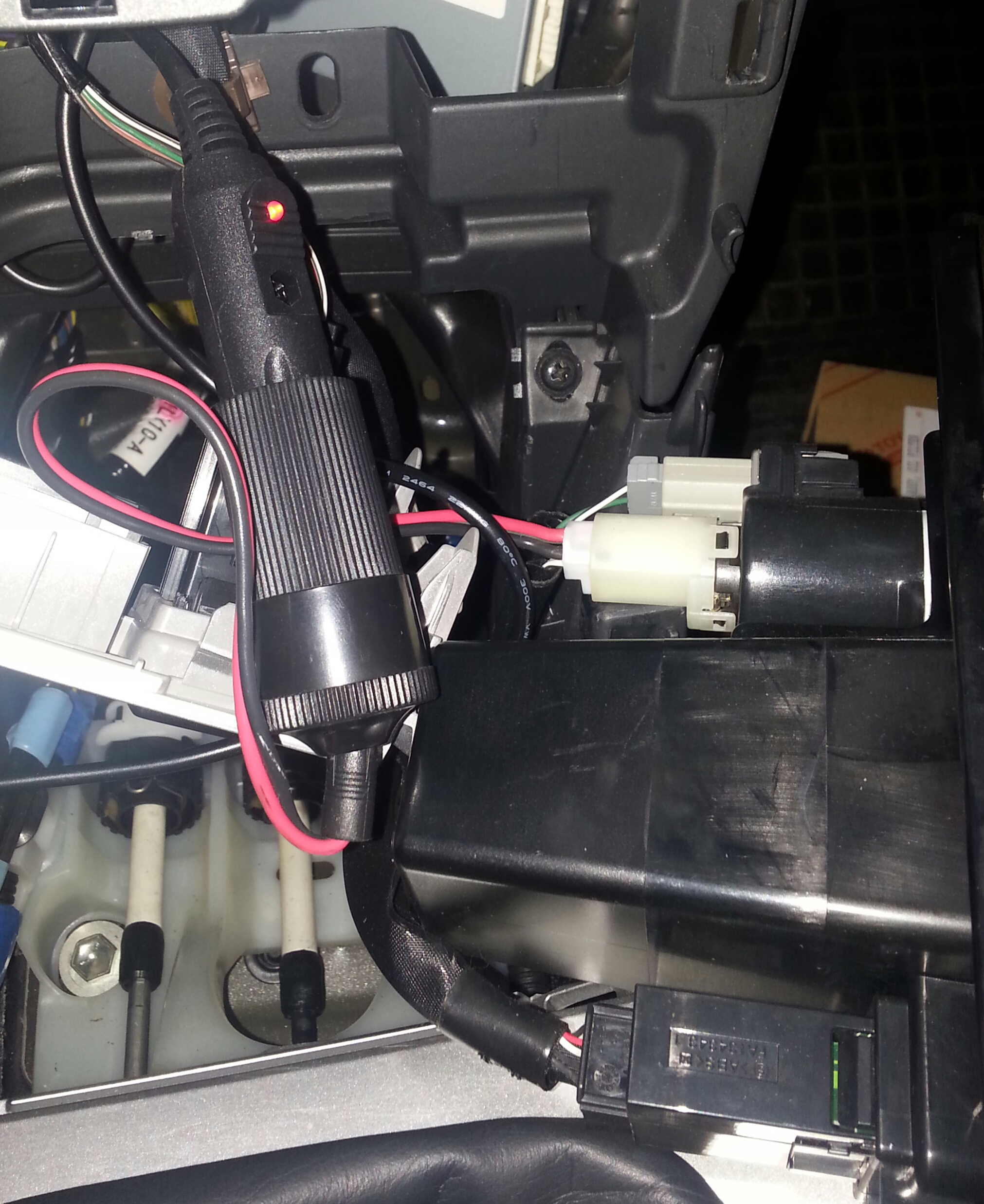 Проводка от блока ВР и от штекера питания проложены в недрах центральной консоли и выведены, через