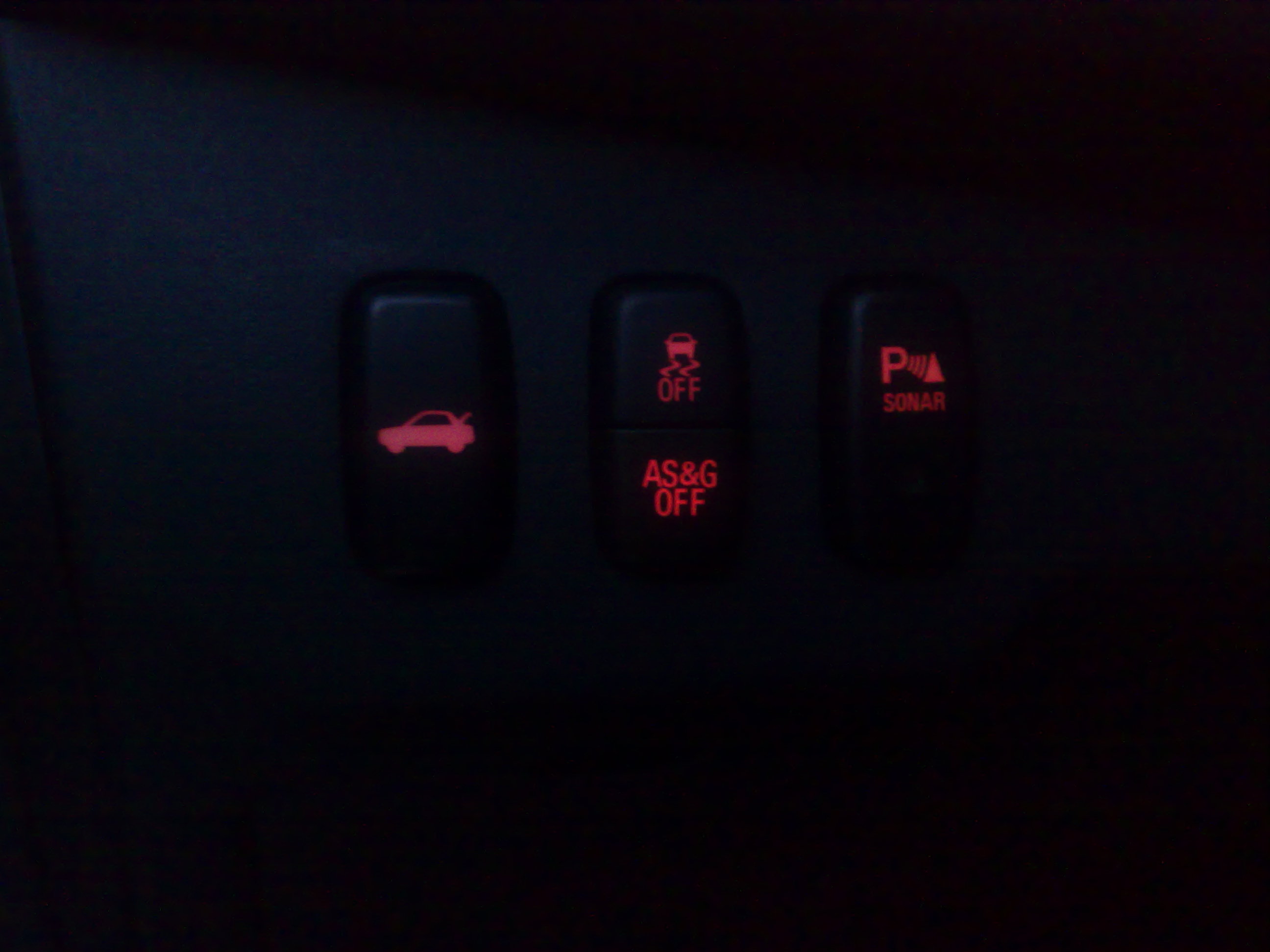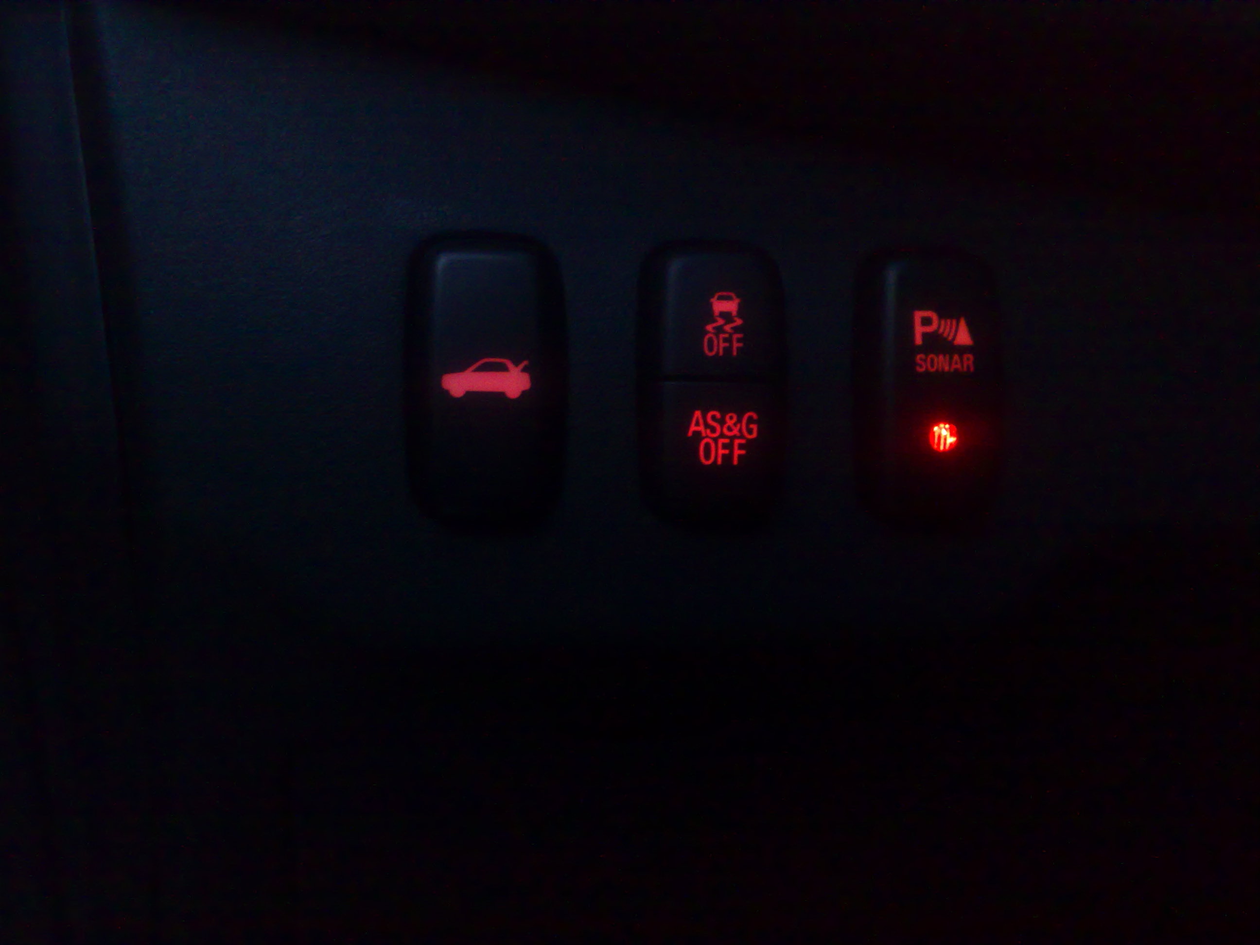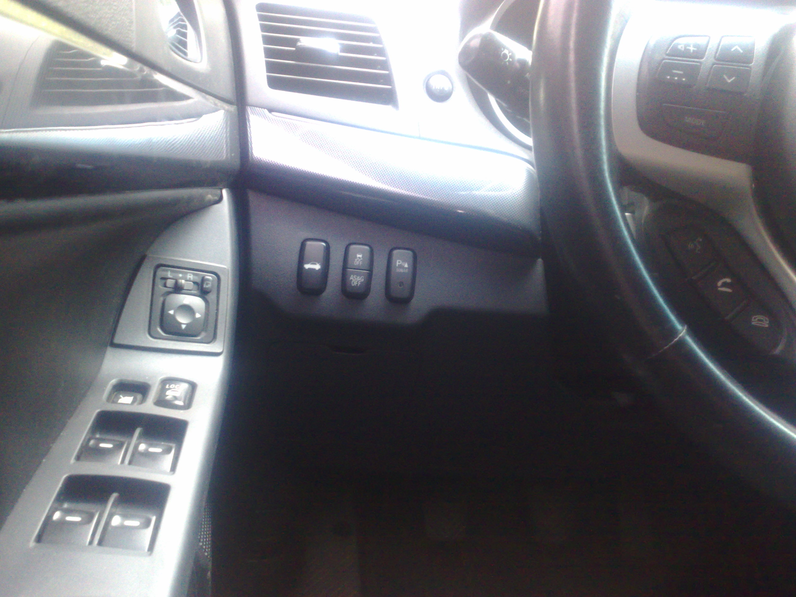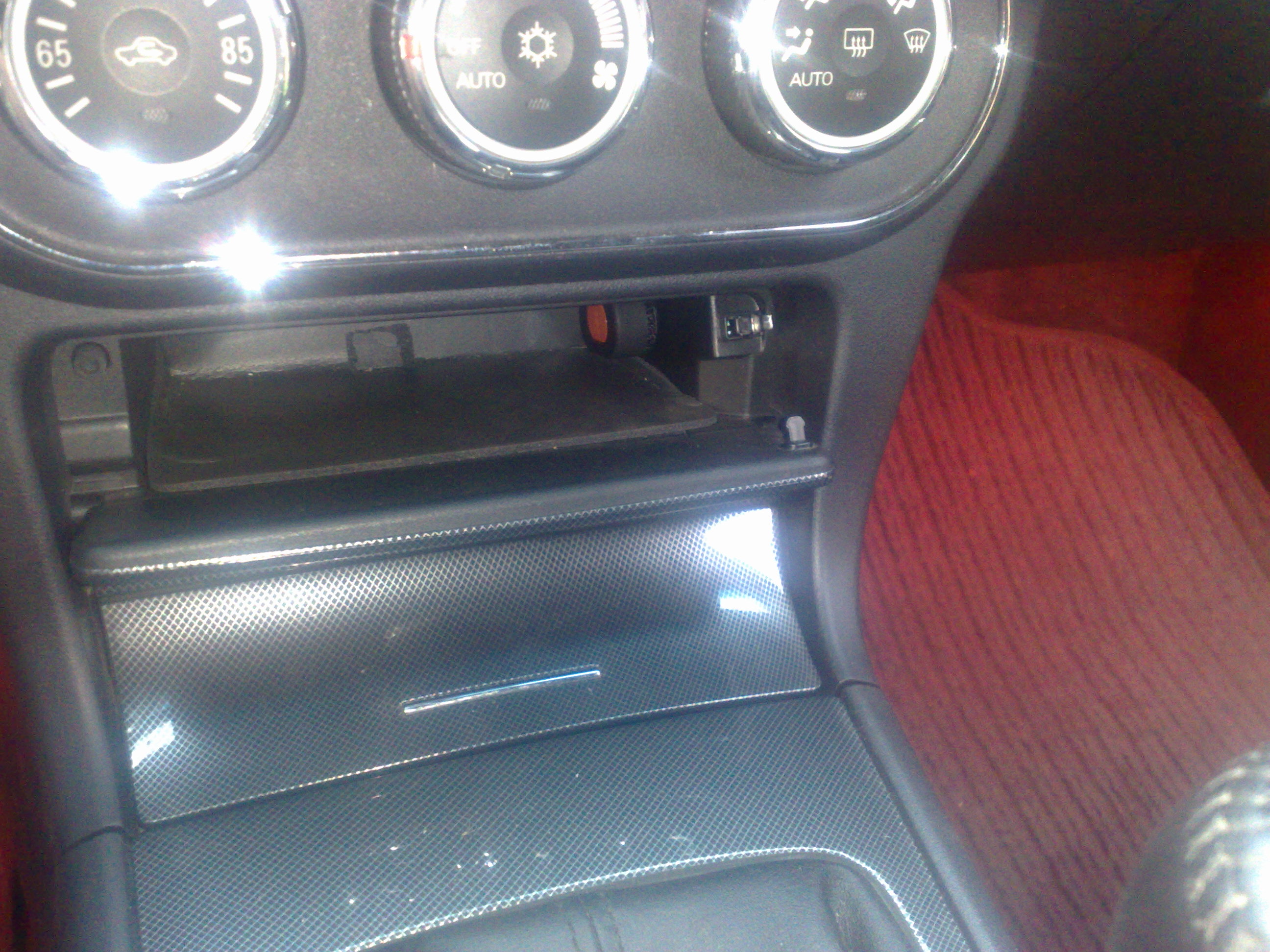 Кнопка изначально была установлена в верхнем ящике консоли, но позже я ее встроил в штатную кнопку от парктроника, тут подробно: