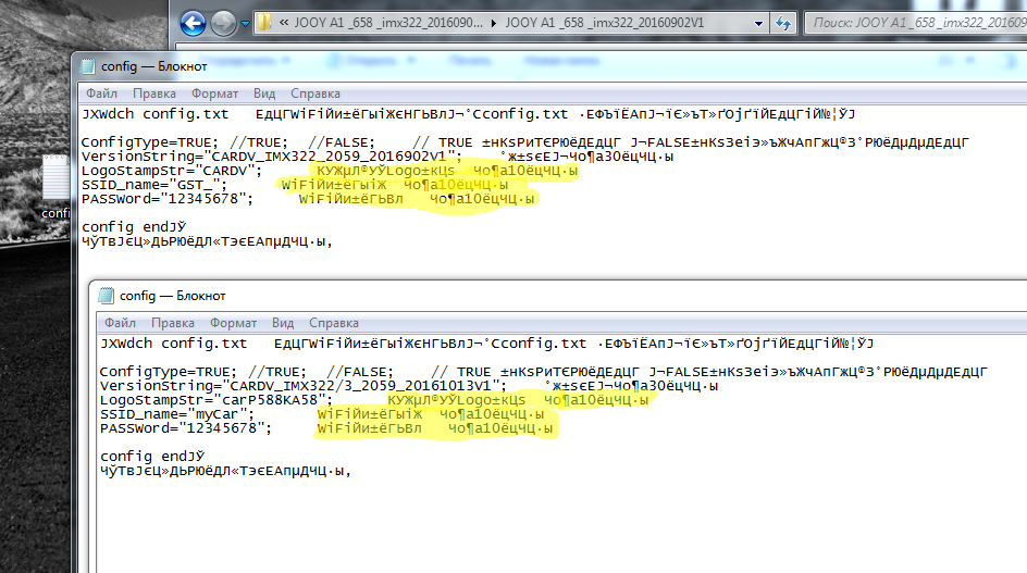 Если у вас строка версии прошивки похожа на "WH.161026.00", а не на "CARDV_IMX322/3_2059_20161013V1", то не прошивайте модифицированные прошивки - получите "кирпич"!