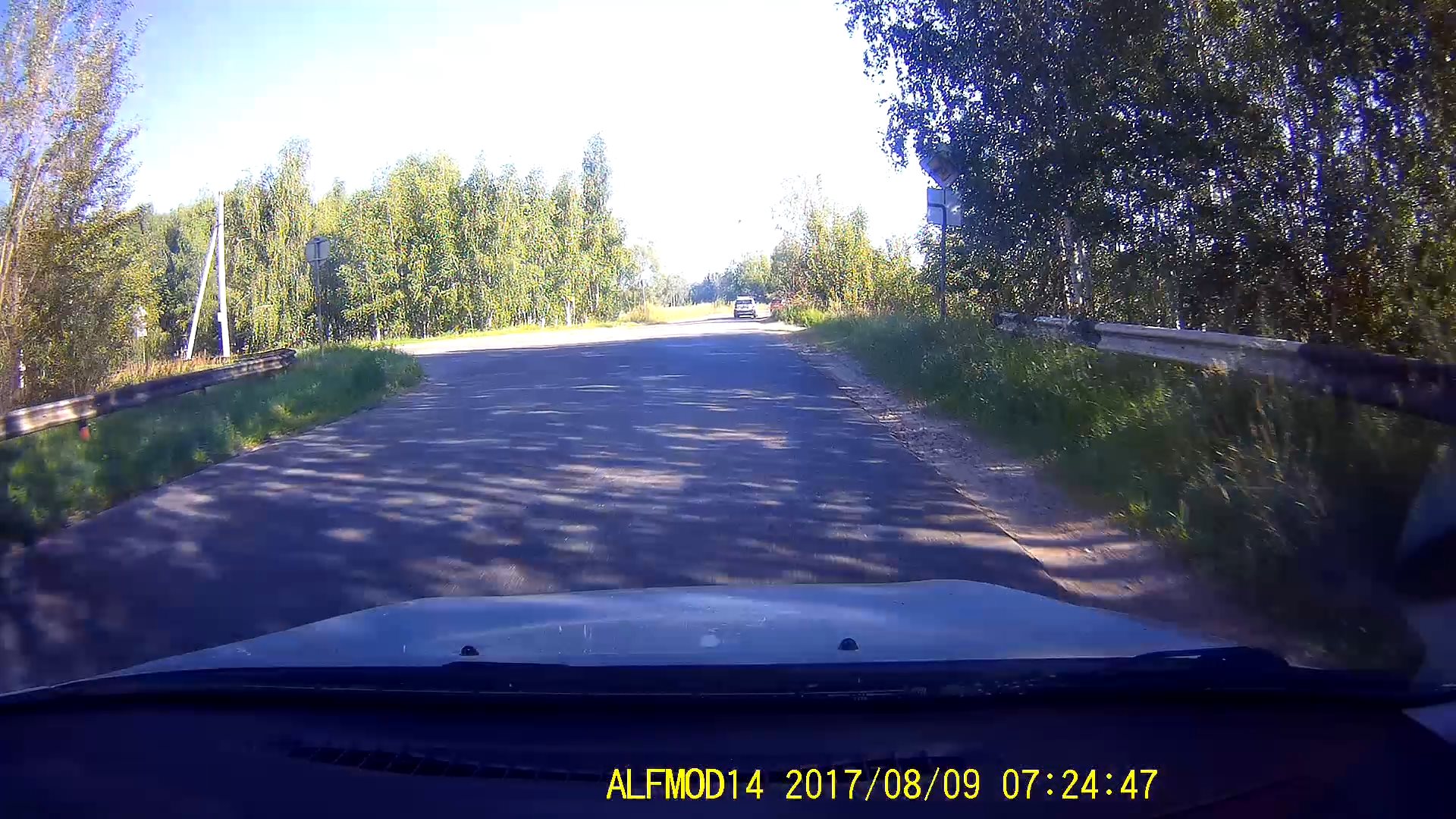 Сложные условия (яркое солнце и небо, машина в тени, небо закрыто деревьями с двух сторон). Результат - небо выбеливается, общая экспозиция увеличивается, чтобы не потерять детали дороги, общая экспозиция могла быть чуть меньше: