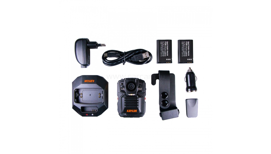 Комплект - Регистратор / Сменный АКБ / Адаптер питания / АЗУ / Зарядное устройство / USB кабель / Крепление на одежду / Гарантийный талон / Инструкция
