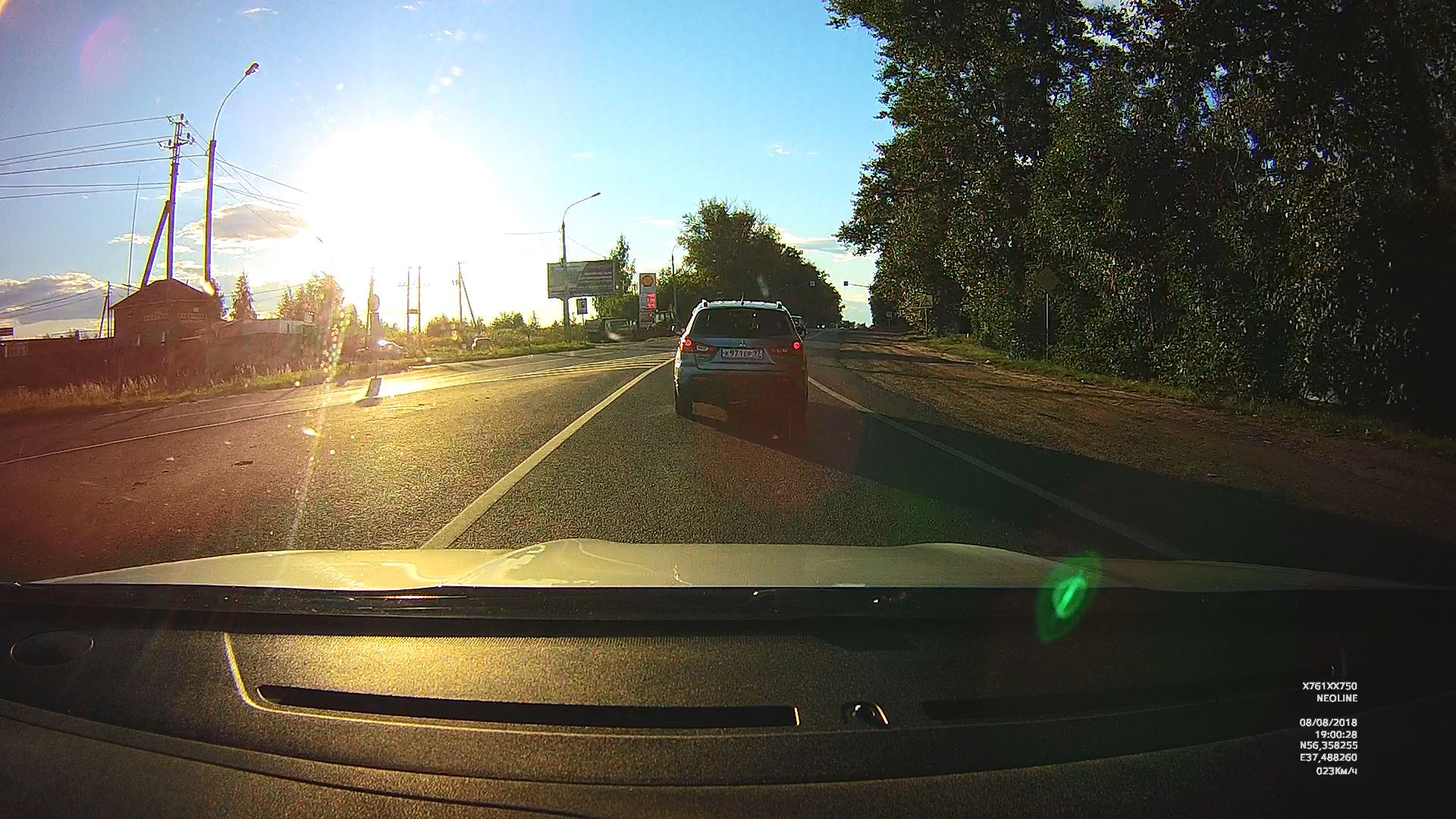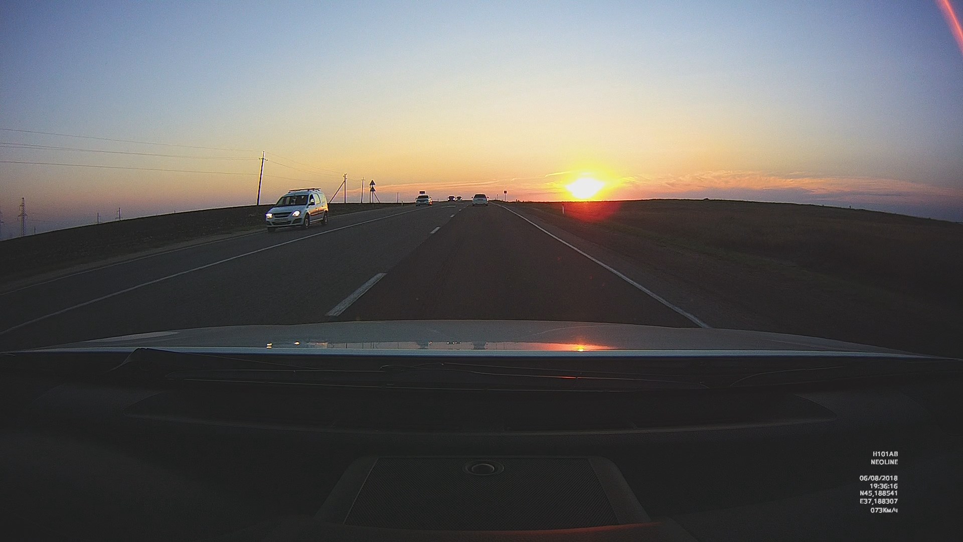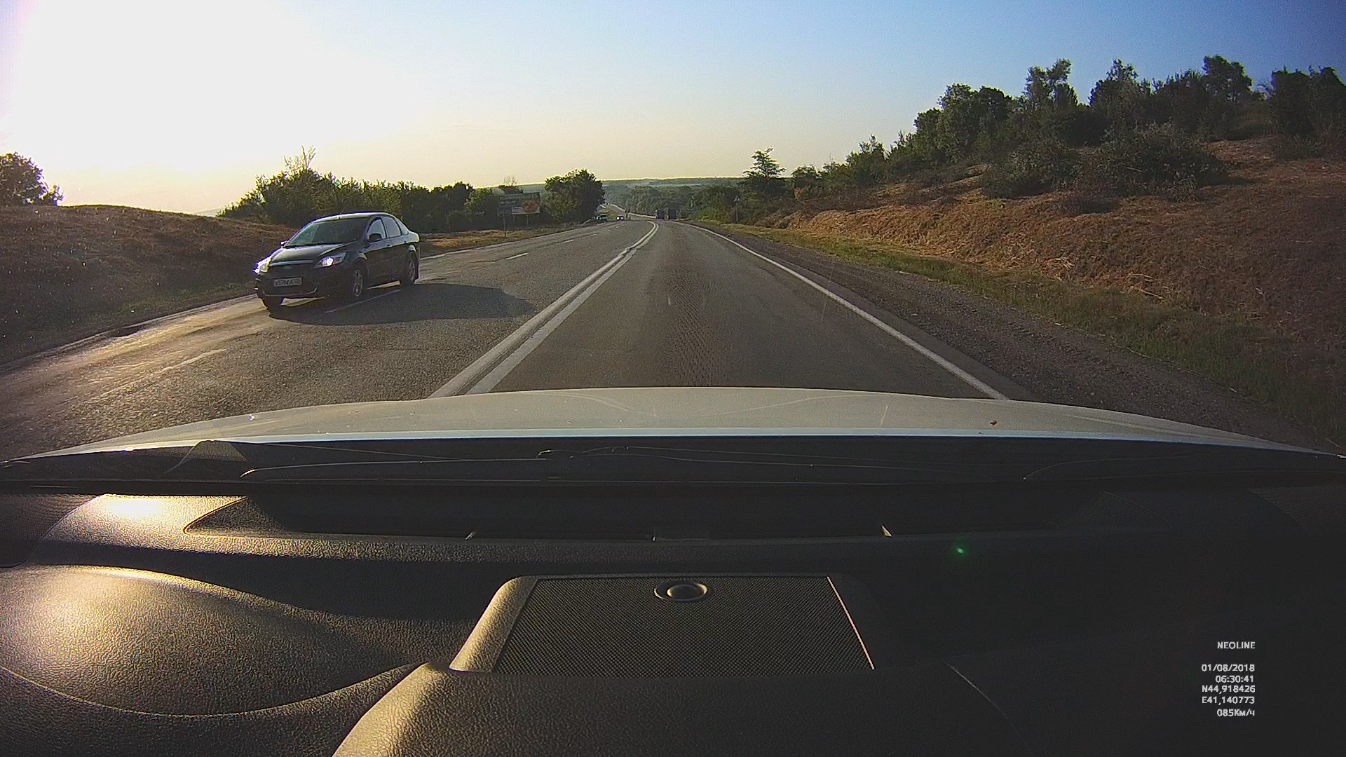 2. Проверил работу ВР по трассе, солнышко утреннее прямо в объектив. Ну прекрасно отрабатывает дорожные и погодные условия.