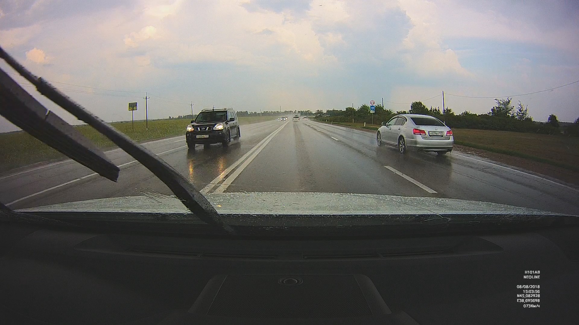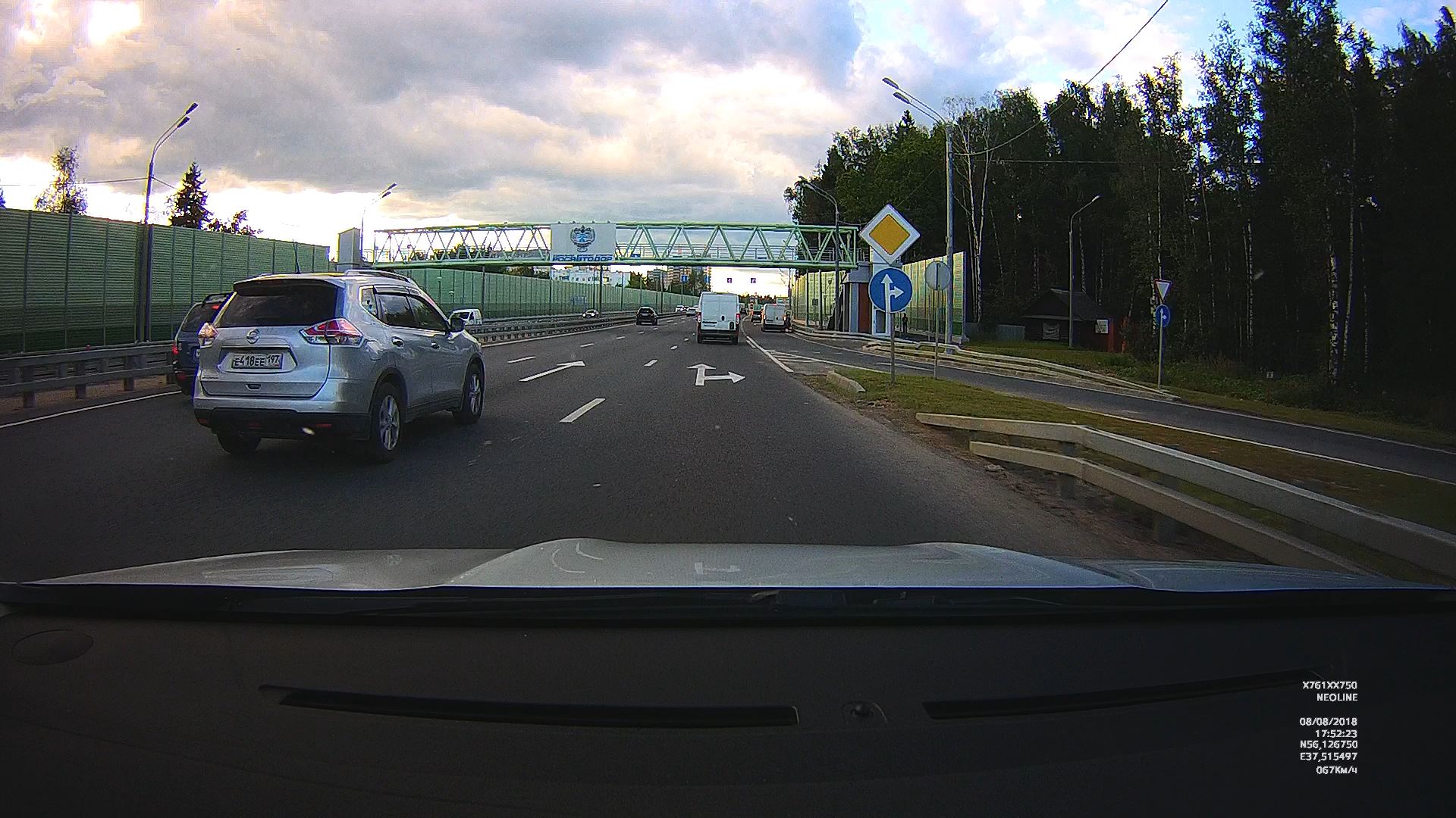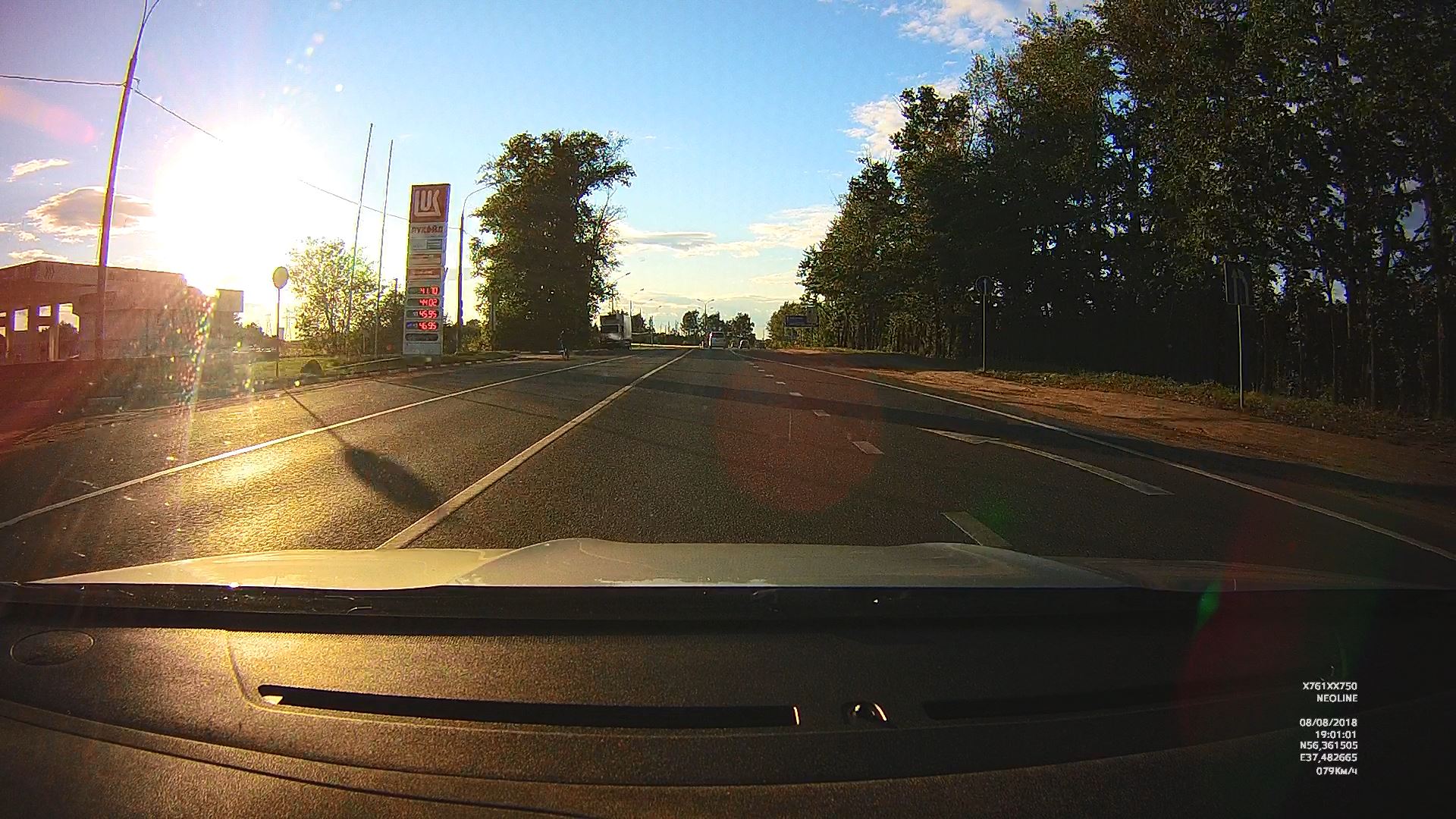 2. Проверил работу ВР по трассе, солнышко утреннее прямо в объектив. Ну прекрасно отрабатывает дорожные и погодные условия.