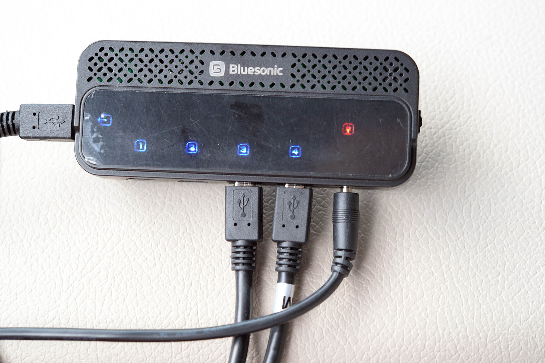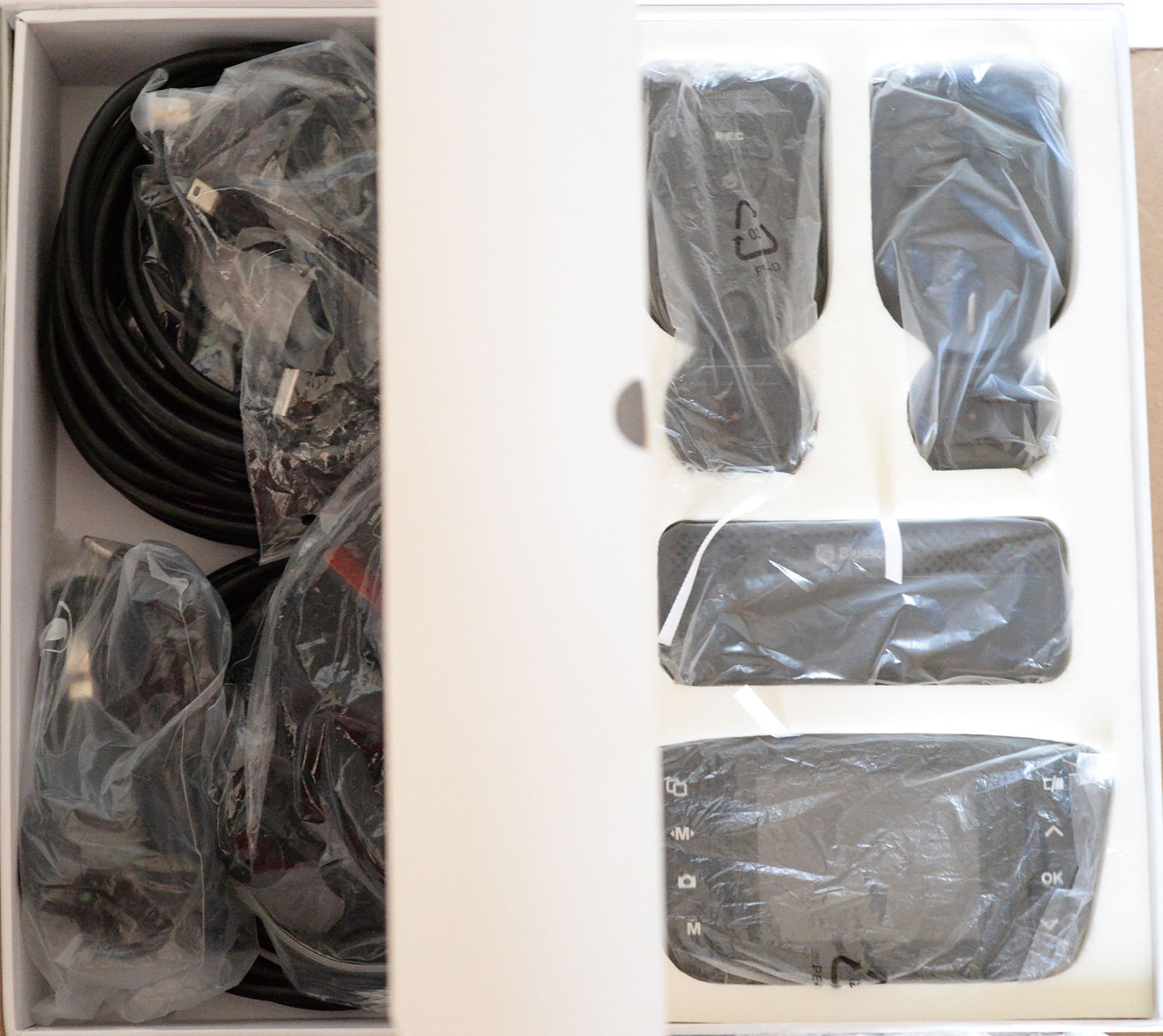 По своей философии Bluesonic BS-F010 представляет из себя двухкамерный (многокамерный) видеорегистратор предназначенный для постоянной установки. Включает в себя два одинаковых регистратора, работающих фактически самостоятельно и независимо друг от друга. Оба устройства подключаются к хабу, через который подается питание. К хабу также подключается блок управления. Через него осуществляется контроль видео, настройка каждого устройства и просмотр записей с них. К хабу можно подключить дополнительно еще два таких же регистратора и все четыре смогут работать одновременно. В комплектации идет все что нужно для установки и работы. Два регистатора, хаб, блок управления, внешний блок GPS, кабели, провод питания в прикуриватель, по два крепления на скотче и на присоске.
