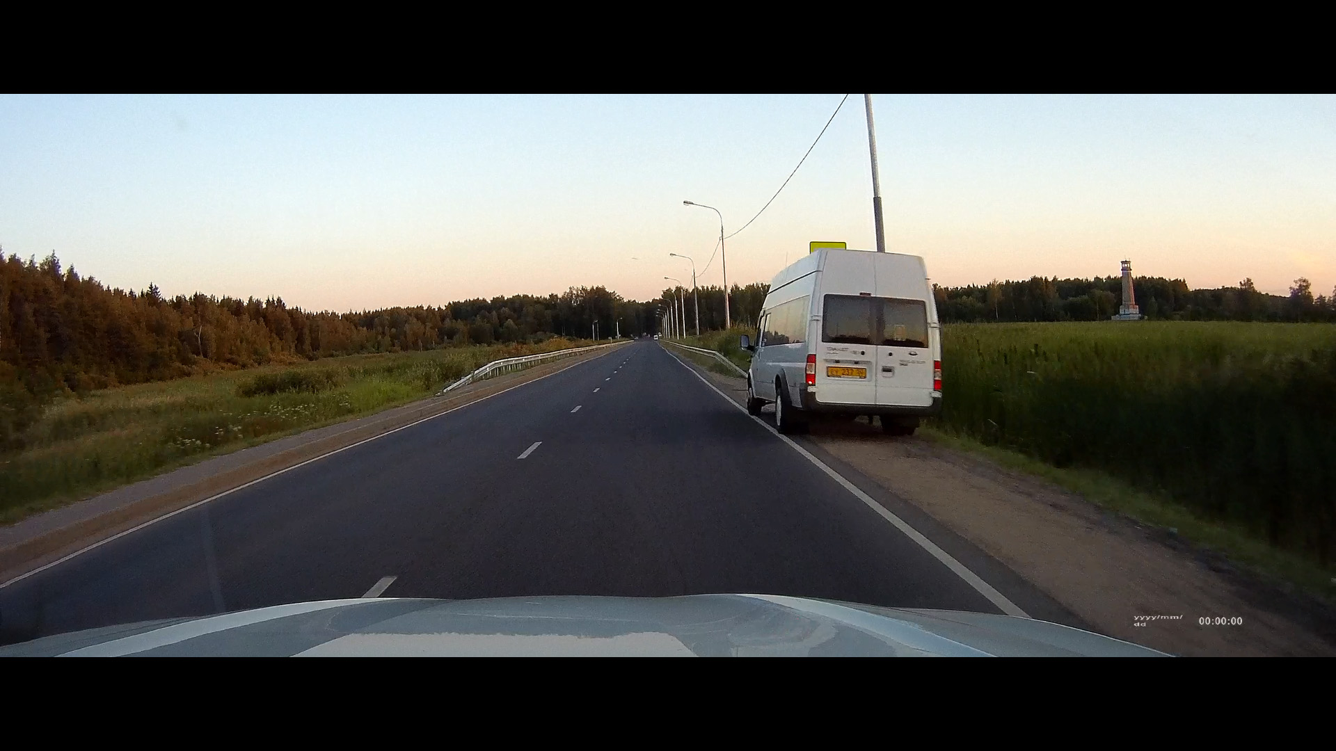 Вернемся к примерам. На первом у нас городской режим и контровое солнце, встречный транспорт. Скорости совсем не большие, солнце не мешает, номера читаются отлично. Далее тоже город, тоже встречное ТС, но скорости чуть выше. Номера уже не читаются, хотя время то же. На выезде из города стоит припаркованный микроавтобус. Здесь не такая разница в скорости, номер читаем. Далее нас обгоняют: разница не большая, все также хорошо видим. Далее несколько скриншотов уже моих обгонов. Видим спектр всех состояний от хорошой читаемости до полной нечитаемости в зависимости от разницы в скорости. Стоит сказать, что чем дальше мы едем, тем сильнее падает освещенность, в наших широтах, правда, это происходит достаточно медленно.