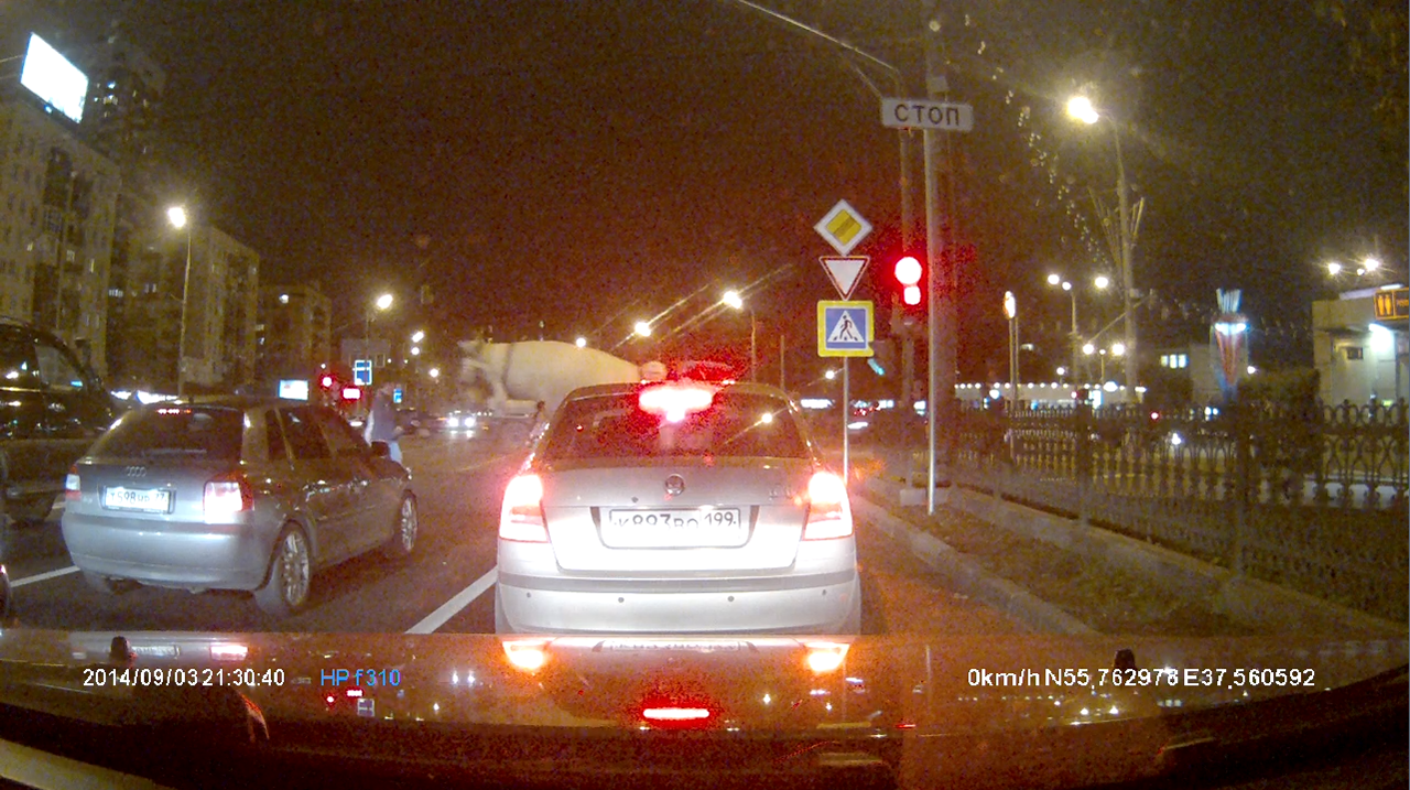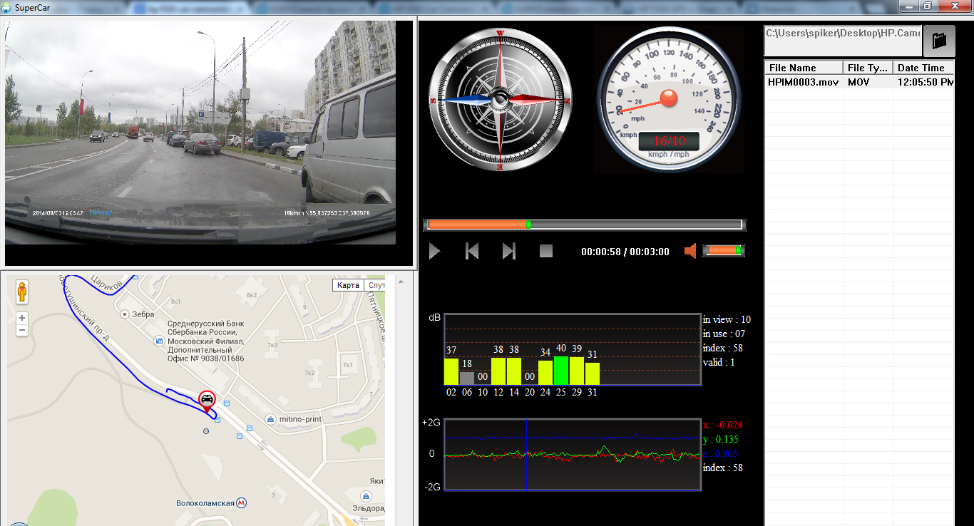 Компания HP (Hewlett-Packard) вышла на рынок портативных видеокамер четыре года назад и с тех пор выпустила несколько моделей автомобильных видеорегистраторов и переносных видеокамер. Отметим, что продукты HP в своем большинстве отличаются качеством сборки, надежностью и весьма неплохой технической поддержкой. Итак, к нам в руки попала одна из новых моделей автомобильных видеорегистраторов HP — Car Camcorder f310. Эта модель имеет встроенный GPS-модуль, поддерживает технологию WDR и обладает цветным ЖК-дисплеем с диагональю 2,4 дюйма. Встроенная камера имеет широкий угол обзора 130° по горизонтали и поддерживает запись видео с разрешением 1920×1080 (Full HD) со скоростью 30 кадров/с. Нельзя не отметить наличие датчика движения, датчика удара, встроенного аккумулятора и возможности вывода изображения на внешний экран. Видеорегистратор выгодно отличается от других подобных устройств тем, что обладает встроенной функцией предупреждения о радарах. То есть в HP Car Camcorder f310 интегрирована база полицейских радаров, которая включает множество стационарных радаров России и Беларуси. При этом сам пользователь может оперативно пополнять эту базу в процессе поездки, добавляя необходимые точки одним нажатием. Комплект поставки Видеорегистратор HP Car Camcorder f310 упакован в небольшую картонную коробку из тонкого картона. Коробка оформлена в неброском дизайне с преобладанием черного и синего цвета. На верхней крышке упаковки присутствуют изображение самого видеорегистратора, логотип компании производителя и перечислены основные особенности этой модели. Остальные грани коробки содержат различную техническую информацию, включая рисунки комплекта поставки, технические характеристики модели, технологии и цветовое оформление видеорегистратора. Да, в отличие от многих моделей других производителей, HP Car Camcorder f310 может поставляться в корпусе трех цветов: черном, синем и белом. У нас HP Car Camcorder f310 поступил в традиционном для этих устройств черном цветовом оформлении, хотя надо сказать, что эта модель и в белом и в синем цвете выглядит очень симпатично и необычно. Внутри коробки покупатель обнаружит: · видеорегистратор HP Car Camcorder f310; · автомобильный адаптер питания от прикуривателя; · кабель Mini-USB—USB для подключения к компьютеру; · крепление на лобовое стекло; · CD-диск с программным обеспечением; · руководство пользователя и гарантийный талон. В комплектацию этой модели включены практически все необходимые «ингредиенты» для быстрой установки и дальнейшей работы. Увы, к этой модели не прилагается карта памяти microSD, поэтому при покупке HP Car Camcorder f310 необходимо приобрести ее. Отметим, что для корректной работы модели в режиме записи видео Full HD необходима карта памяти microSD стандарта SDHC, объемом до 32 ГБ и со скоростью записи не ниже 6 МБ/с (Class 6). Поскольку данный видеорегистратор поддерживает вывод изображения на внешний экран с помощью интерфейса HDMI, при необходимости к нему можно докупить соответствующий кабель с разъемом Mini C HDMI на одном из концов. Управление Управление этой моделью осуществляется с помощью основных четырех кнопок, расположенных под ЖК-экраном. В правой части лицевой панели над экраном располагается небольшой светодиод активности устройства, который горит разным светом в зависимости от текущего состояния работы. Включение/выключение модели осуществляется 