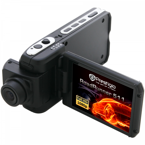 Многофункциональный автомобильный видеорегистратор Prestigio RoadRunner 511 обеспечивает возможность съёмки видео качества Full HD. Оснащённый большим ЖК-дисплеем диагональю 2,5 дюйма (6,4 см) на тонкоплёночных транзисторах (TFT), поворачивающимся на 270 градусов, и объективом, поворачивающимся на 180 градусов, он предоставляет вам множество вариантов использования. Огромные возможности настройки изображения и довольно продолжительное время автономной работы позволяют использовать видеорегистратор RoadRunner 511 в качестве переносного фотоаппарата. Одним из главных преимуществ данной модели является функция записи видео в высоком качестве Full HD с разрешением 1920x1080. Скорость записи составляет 30 кадров в секунду, что является оптимальным для восприятия движущихся объектов человеческим глазом. При необходимости, скорость записи можно менять на 60 кадров в секунду при разрешении 1280x720 пикселей. Формат записи видео – AVI/H.264. Файлы формата H.264 отличаются компактным размером, поэтому вы можете использовать свободное пространство карты памяти как можно более эффективно. Ещё одним преимуществом видеорегистратора RoadRunner 511 является 14-мегапиксельная камера. Угол обзора составляет 120 градусов.