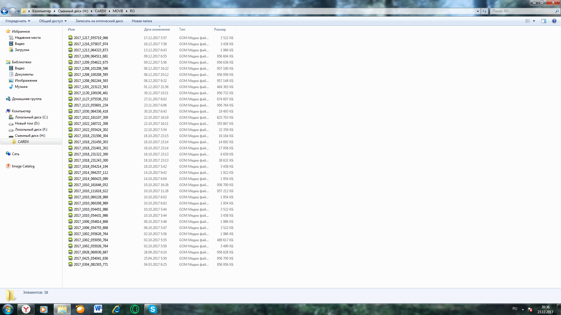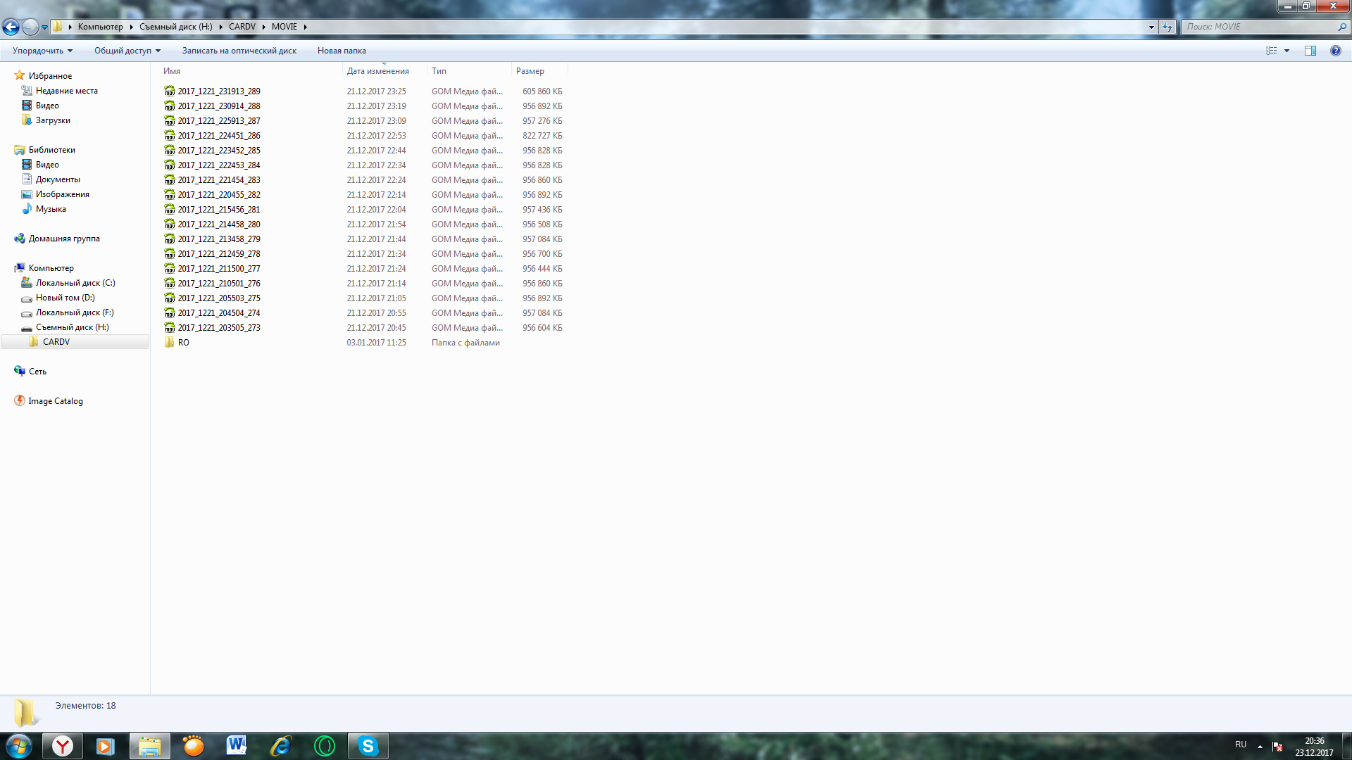 Всем здорово! Извиняюсь, если было. Короче, такая ситуация... ВР DEXP EX-210L. Карта памяти на 32гб. Пишет, к сожалению, не все.... Стоит перезапись каждые 10 мин. 21.12.2017 регистратор был включен утром, но запись имеется только с 21 до 23.30. При этом есть папка (RO), в которой куча более ранних записей, естетсвенно ненужных, которые занимают много места. Которого, возможно, и не хватает как раз для полноценного дня записи. 32 гб...должно же хватать для целого дня записей. Че делать? Как заставить регистратор использовать все место и не сохранять старые записи? Прилагаю фото Всем спасибо за отклики.