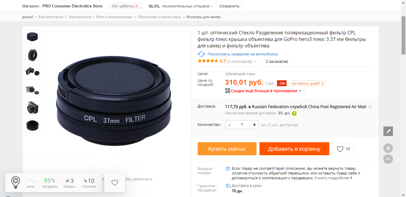 Пластиковая поляризационная плёнка явно не для оптических нужд. Нужен нормальный стеклянный CPL. Я уже в корзину такой кинул: https://ru.aliexpress.com/item/1pc-...ml?spm=a2g0o.cart.99999999.272.4ba93c00zlbKj5 Как раз должен подойти:
