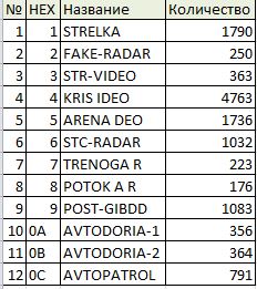 Хочу ещё раз отметить, что в Вашей базе только корректные названия, всяких "слияний" нет. Все виды камер из Вашей базы я привел в своем предыдущем посте. И если они правильные (соответствуют реальным камерам на дороге) - спасибо большое, буду брать Ваш список для своей программы редактирования. Но я же изначально говорил об официальной базе, которую я скачал с офф сайта не далее как 3 дня назад. Так вот там присутствуют все те виды, которые я размещал в Excel'евском файле. Я на дороге их не проверял, но уверен, что если я проеду под камерой, для которой в офф базе стоит STRELKA-POST он (ВР) мне именно это и покажет. Т.е. тут не в алгоритме моего разбора дело, а в офф базе.