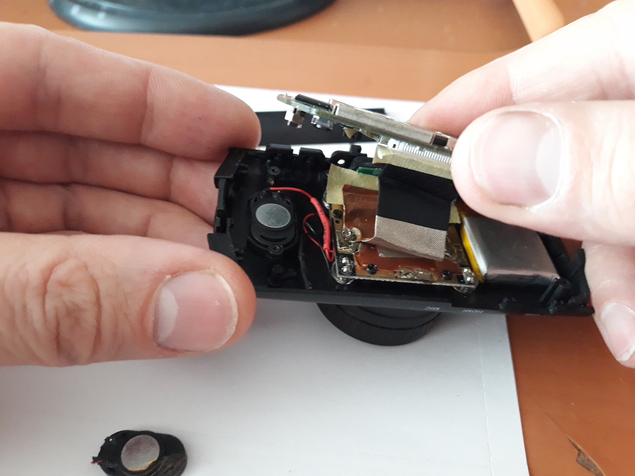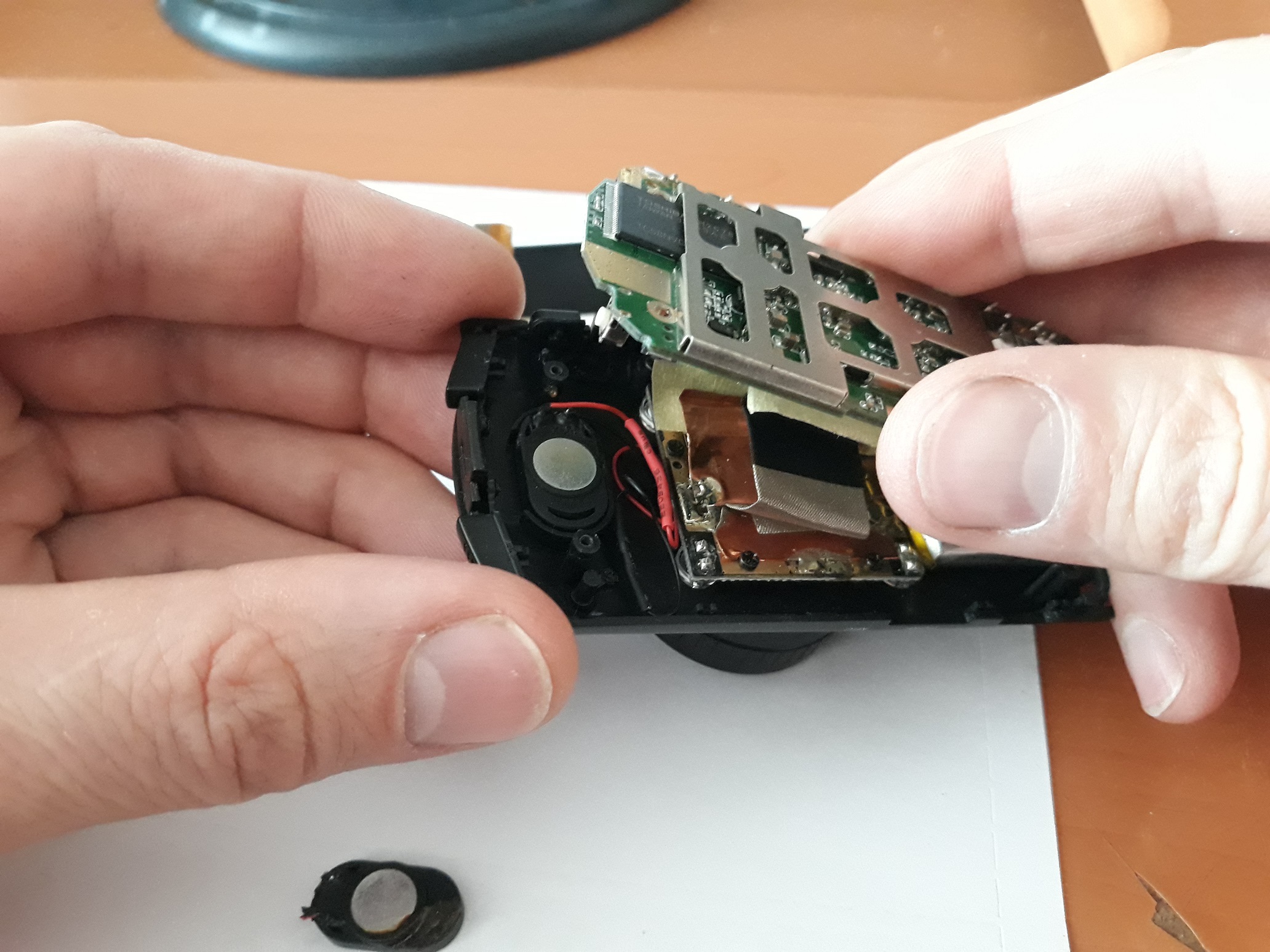 начал хрипеть и к вечеру совсем пропал. Разобрал и заменил динамик. Взял от старого видеорегистратора другой модели, по размеру подошел идеально.