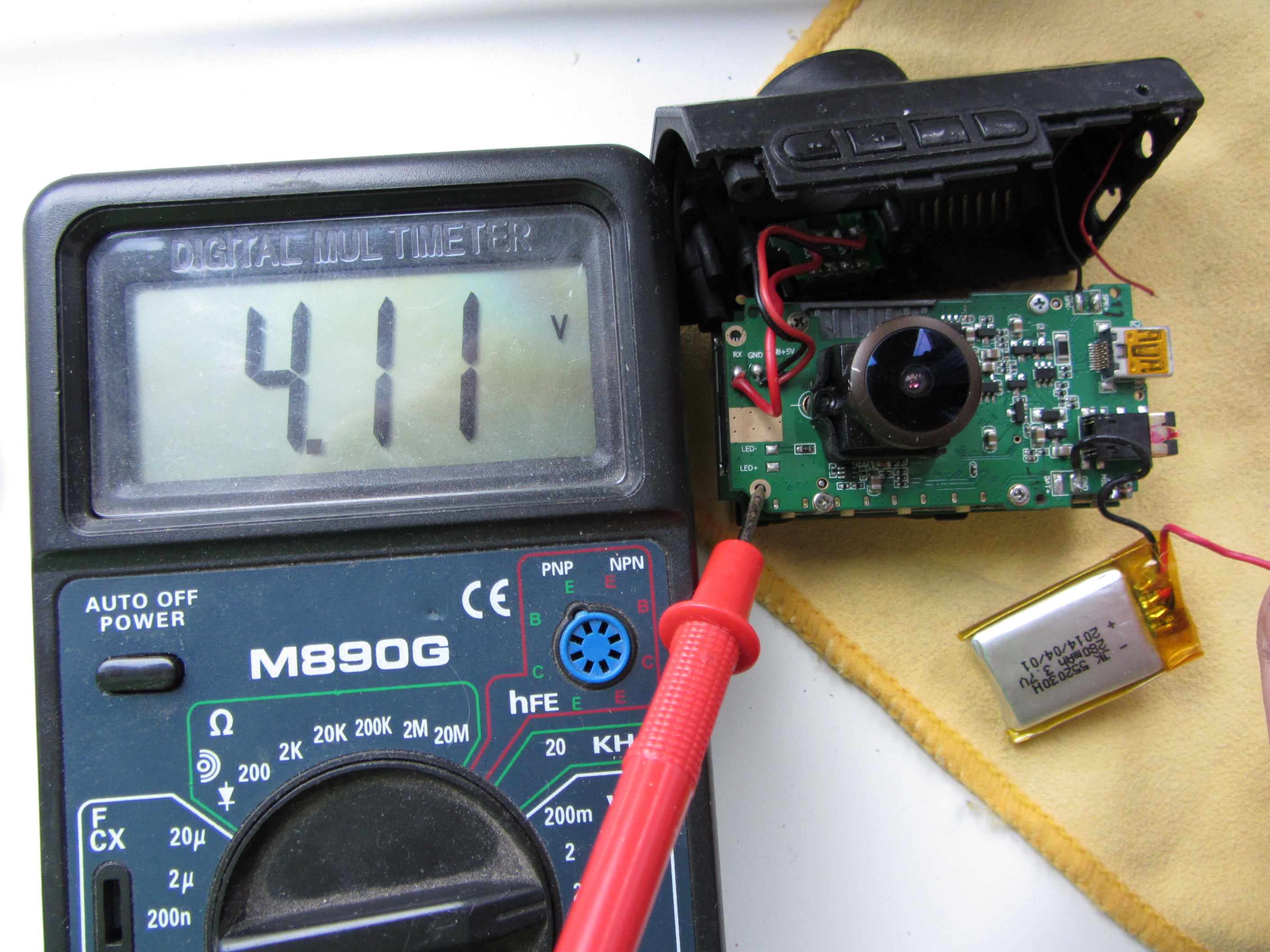 Решил его проверить и полностью зарядил и отпаял один контакт. Замерил около 4.1В.