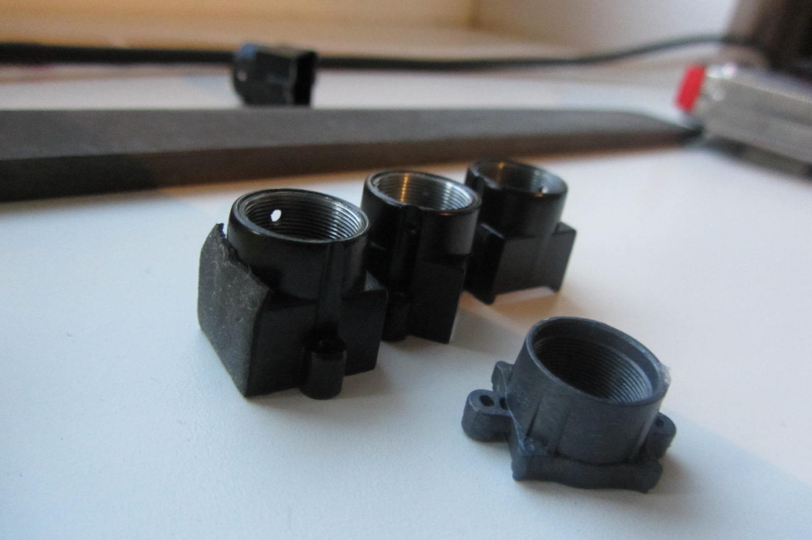 Подточил плату , вставил холдер, объектив вкрутился почти под шляпку(намотал на наго 1.5 слоя фумленты и застопарил винтом ).