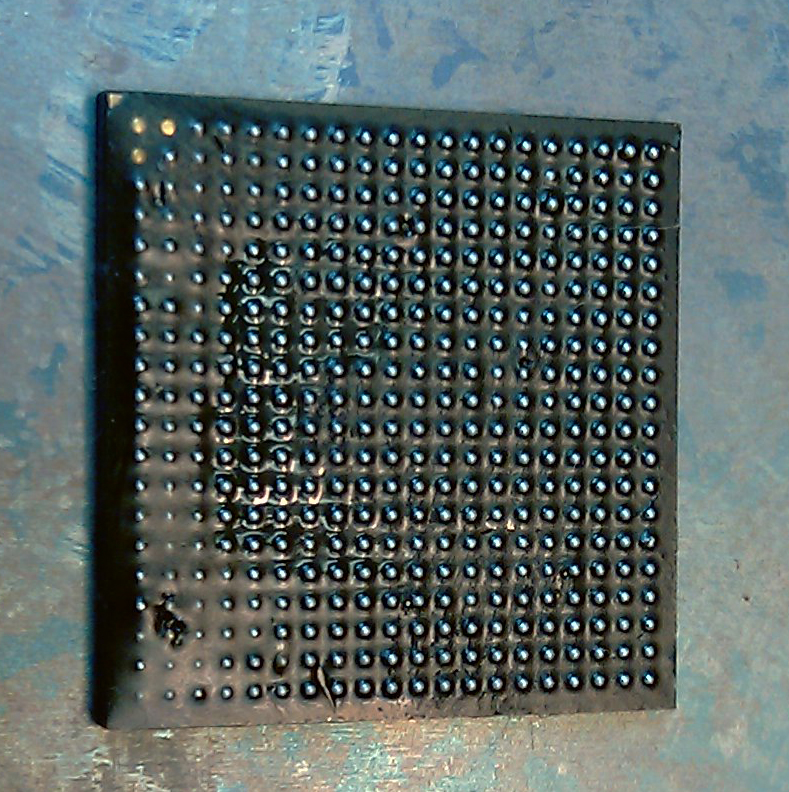 Вообщем есть определенные результаты. Для того чтобы раздобыть прошивку и понять причину поломки моего регистратора, я купил такой же регистратор, только уцененный в пллер.ру. Цена была вполне демократичная и в комплекте поставки был GPS модуль, которого в моей поставке не было. Гарантия на уцененный товар была 2 недели, но как мы знаем, по факту ее сейчас нет вообще, поэтому не было жалко разобрать "новый" регистратор. Причина уценки была указана как: "Коробка от другой модели". На поверку оказалось, что регистратор после ремонта, на нем меняли одну флеш 512МБ. Слил прошивку, она оказалась более свежая чем моя 5.1S (у меня просто 5.1). Суть новой прошивки, она добавляет трекинг файл по данным от датчика GPS. Используя рабочую плату проверил все компоненты моего регистратора. Вот несколько выводов. 1. Из двух камер левая от дисплея камера является главной (у меня это та, что без зума) у нее разъем на 26 пинов. Если эта камера "умирает", то после загрузки мы видим черный экран с надписями и через некоторое время аппарат виснет. 2. Если "умирает" правая камера (у меня она с зуммом), то видео записывается без нее, просто на правой стороне помехи и т.п. Разъем шлейфа камеры на 24 пина. Я изменил свое мнение по поводу слетевшей прошивки. Прошивка у меня была не причем. Вообще исследуя аппарат, я пришел к выводу, что все проблемы устройства заключаются в BGA чипах и бессвинцовой пайке. Это сочетание в случае перепада температур и вибрации, приводит к плачевным результатам. Отсюда вывод хотите, чтобы устройство работало долго забирайте его из машины и не кидайте в бардачок (по сути не очень удобно). Камера в этом устройстве представляет из себя кристалл-матрицу, установленную на BGA шарики. Я так понимаю шарики отваливаются в процессе эксплуатации и камера "умирает" или начинает глючит (например все становится сиреневым или еще каким-то). Возможно можно реанимировать чип. Вот такие новости. Сейчас на поверке дня у меня запустить старую плату (откинулась флеш, та которая была заменена в новом регистраторе). Прям такую же не нашел, думаю попробовать поставить схожую, о результатах отпишусь. Потом буду разбираться с камерами и проверю как заливаются обе прошивки через комп. Если все будет хорошо, выложу обе прошивки. Алек, думаю я ответил на ваш вопрос. В сервисе поток устройств им некогда заниматься долгой диагностикой. Мастер должен делать в месяц более 100 устройств, чтобы получить свою зарплату и поэтому некогда разбираться с одним аппаратом целый день. zinovin, у вас скорее всего пропадает сигнал от проца на микруху с прошивкой, раз вы говорите, что у вас не сохраняются настройки. Сразу скажу не стоит прогревать чип, т.к. это дает очень временные результаты, нужно перекатывать проц. Я свой перекатал. Фото проца ниже. После съема (видно что три контакта вообще медные, вероятно шарики их касались, но не запаялись) и после накатки.