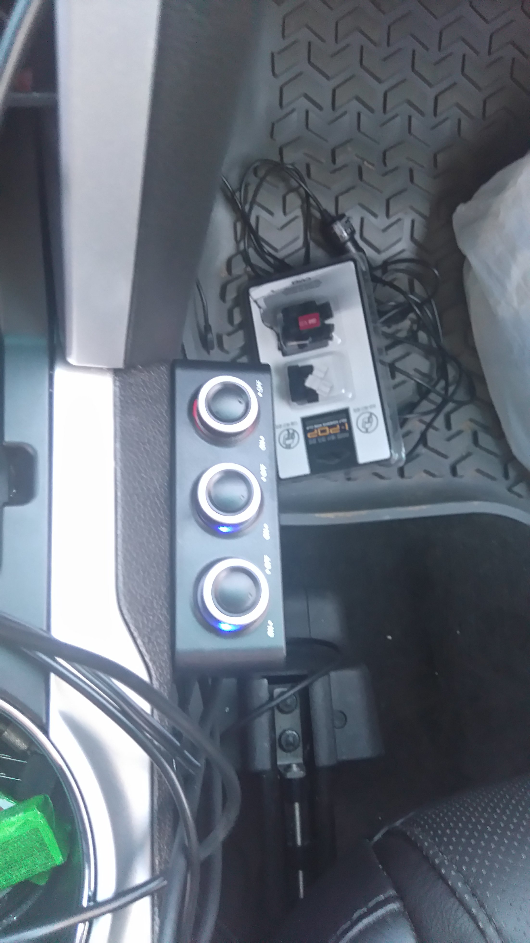 Может кому поможет, проблему включения/выключения ВР, а также и РД + осталось дополнительное гнездо я решил вот так (так как в моей машине отрубается через какое-то время только розетка на 110 вольт, а все гнезда прикуривателей остаются под напряжением) вообщем-то удобно на самом деле, гнезда прикуривателя не нужно каждый раз "насиловать", но это конечно тем автовладельцам, у которых не отключается питание в гнездах, когда выключено подсвечивается красным, когда включено синим...