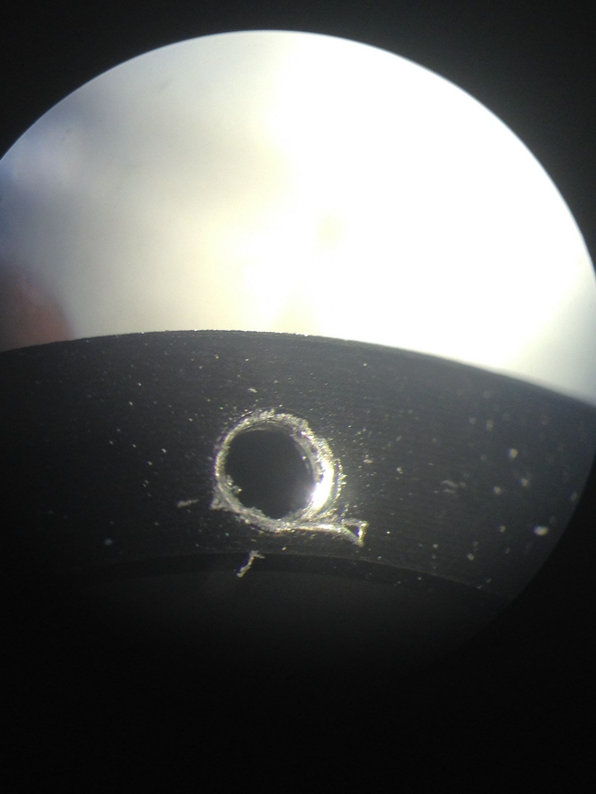 Это отверстия в корпусе объектива для тех самых винтов. Плохо видно, но понятно, что резьба только на самом краешке. Глубина достаточная, но резьбы нет.