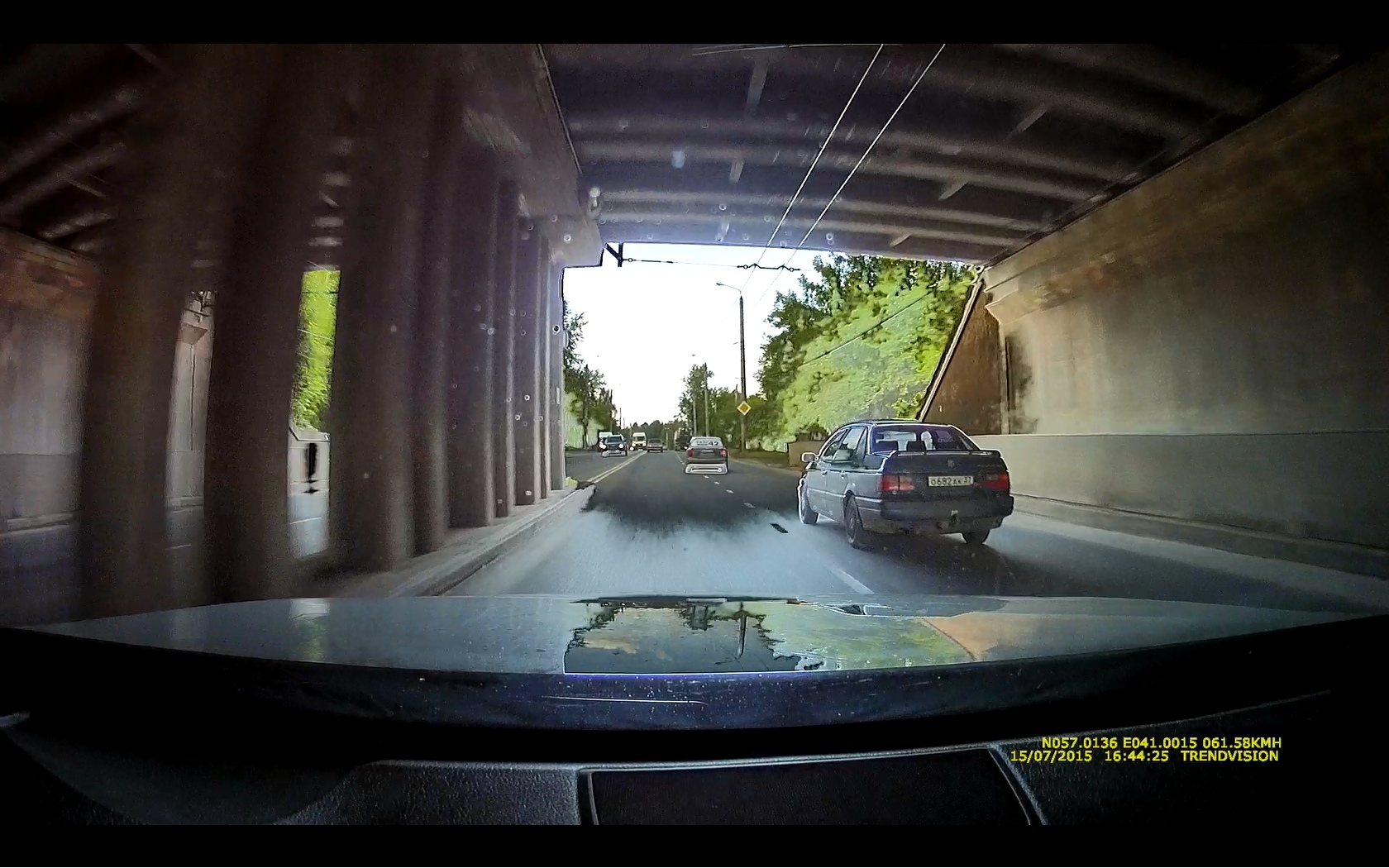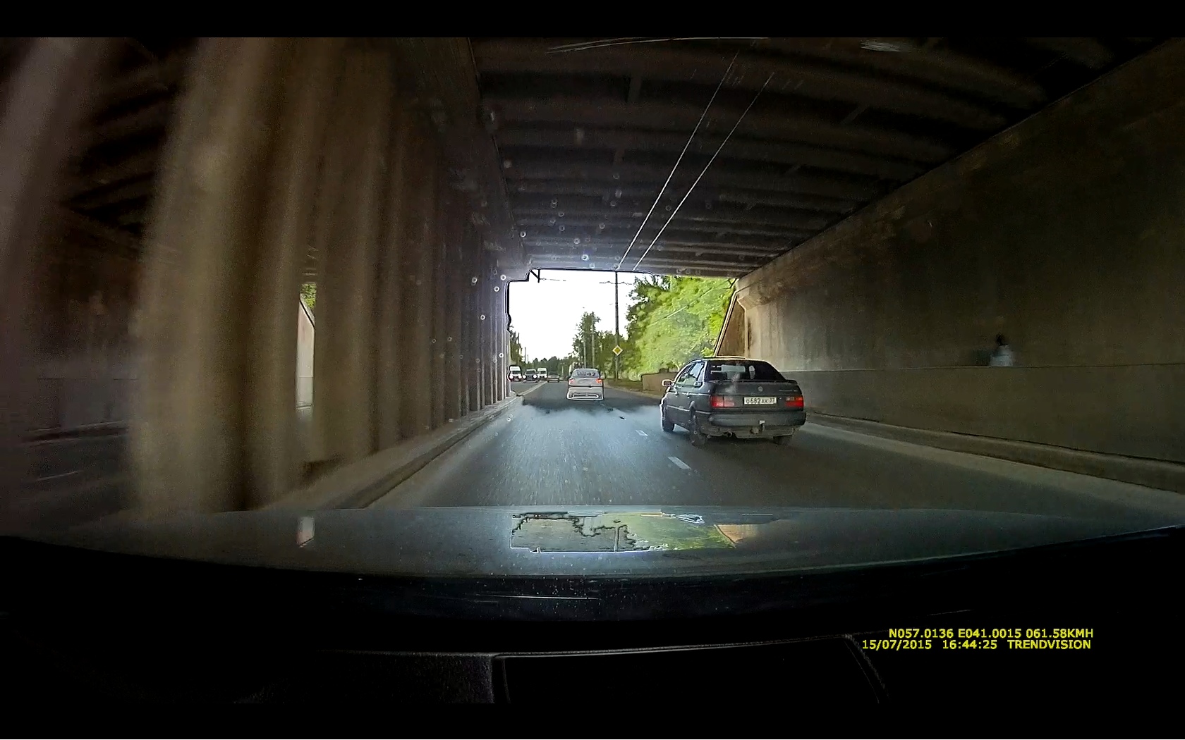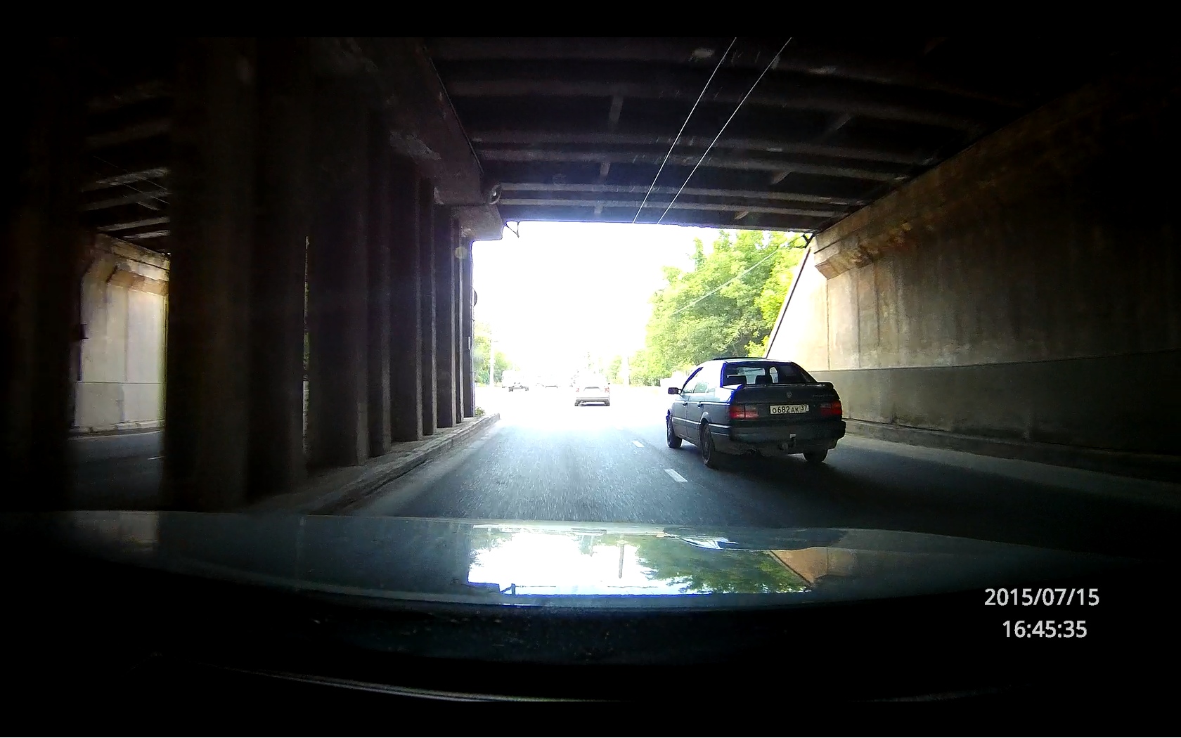 Спасибо d.Alex. Как раз то что надо, чтобы рассмотреть HDR. Понять, что такое хороший WDR сложно. Точнее непонятно что именно он должен реализовывать. Из того что я видел раньше это было совмещение двух снимков с двоением картинки при высокой скорости авто. На 718 я вижу другую реализацию WDR. Информация берется с двух снимков на кадр и объединяется в один. Картинка здесь не двоится. смотрю здесь: https://yadi.sk/i/Y5-Gic9FhtP7v - TDR-718 (путепровод 1) https://yadi.sk/i/IS9RKF9ghtP7i - G90 (путепровод 1) Слева 718 с HDR, справа G90 без HDR Сложилось впечатление, что перед въездом под путепровод HDR 718-го не задействован и ВР снимает как обычно При въезде под путепровод HDR еще не работает Под путепроводом оценивается потемневшая обстановка, HDR подключается, делаются 2 снимка на кадр, один с короткой выдержкой, другой с длиной. Потемневшая обстановка светлеет за счет кадра с более длиной выдержкой, обратите внимание, что столбы слева начинают смазываться из-за длиной выдержки (в снимках выше они не смазаны) Двоения картинки в кадрах нет. Картинка делится на две области: темная под путепроводом и светлая за ним. Темные области картинки берутся с одного снимка (с длиной выдержкой), Светлые области берутся со второго снимка (с короткой выдержкой). Наложения областей с двух снимков одновременно нет, потому и двоение отсутствует. Выезд из под путепровода смотрится не привычно Кажется, что за путепроводом появилось негативная картинка, но она позитивная. И тень под авто за путепроводом выглядит как тряпка, тень осветлена втрорым снимком HDR. Человеческий глаз по другому адаптируется к таким картинкам и ДД глаза, шире чем у матрицы. Не готов сказать, можно ли обработку двух снимков от HDR реализовать лучше или как то по другому. Но в ВР днем HDR вполне можно пользоваться, он будет вполне сносно компенсировать проезд тоннелей, крытых парковок,... Из того что я вижу на 718 HDR не включается при обычной дневной съемке. Если у кого-то есть кадры с другим поведением HDR, поделитесь оригиналами, плз