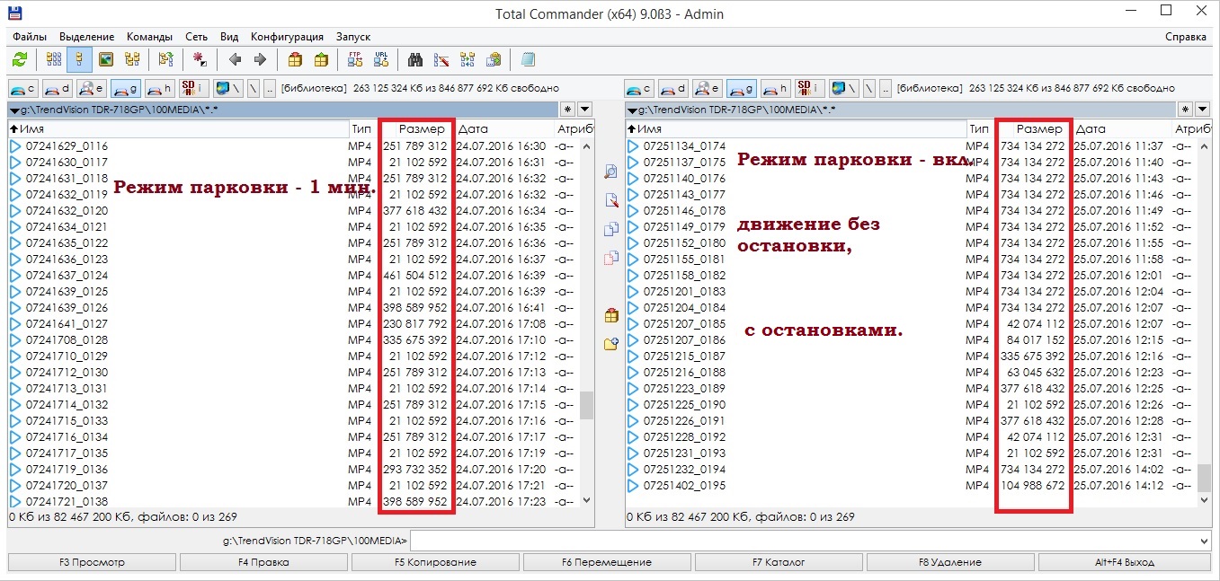 Всем добра) Может кого успокоит разный размер видеофайлов на карте памяти) Спойлер: Размер файлов видео И опять глюк) Спойлер: "Выход из режима парковки." К сожалению на новой прошивке придётся отключить режимы предупреждения столкновения и парковки.
