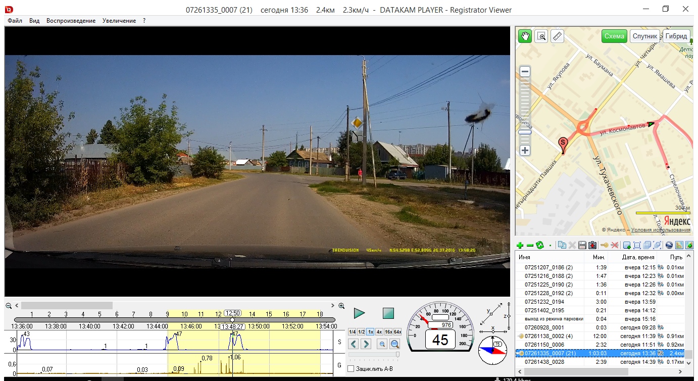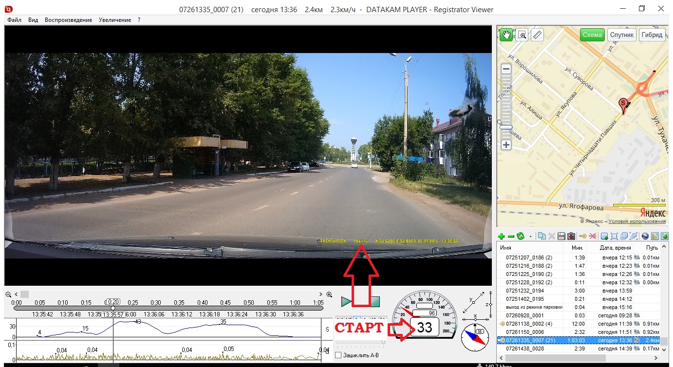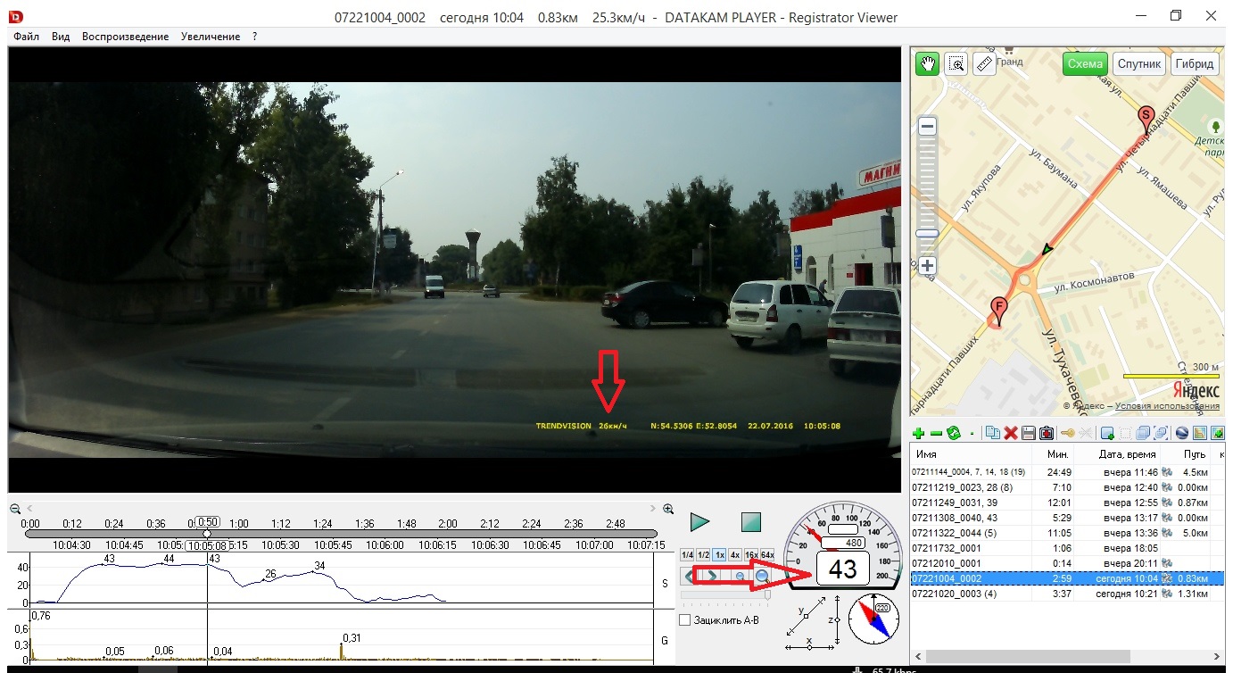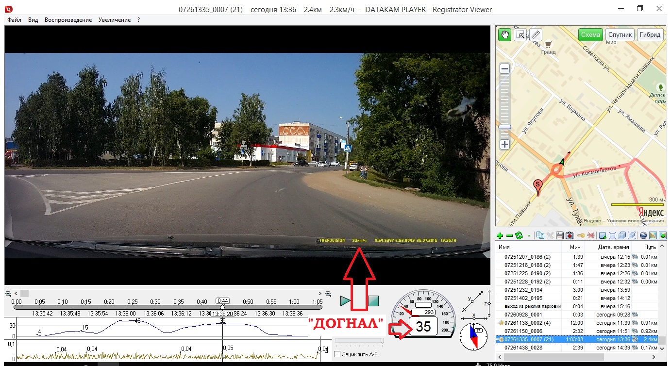 Наши разработчики базы сами не составляют, берут готовые. Именно это я имел в виду. И Вы говорите про то же. --- Сообщения Объединены, 27 июл 2016 --- Вариант устранения этой бяки зависит только от Вашей фантазии и возможностей. Привел свой и @makeevb только как пример. Ни в коем случае не как единственно возможный вариант, просто один из... --- Сообщения Объединены, 27 июл 2016 --- Посмотрел файлы вчерашней пробежки. Такого, как пишет @Олег Геннадьевич у меня не наблюдается. Возможно, потому, что отключено все, не имеющее прямого отношения к спидкам и непосредственно видео-съемке. Парковка, полоса движения, предупреждение о столкновении и пр. полезные дополнения мне в данный момент просто не нужны, поэтому все отключено. На скринах видно: файлы все одного размера, в датакам плеере есть небольшая разница в скорости. Спойлер: Скрины