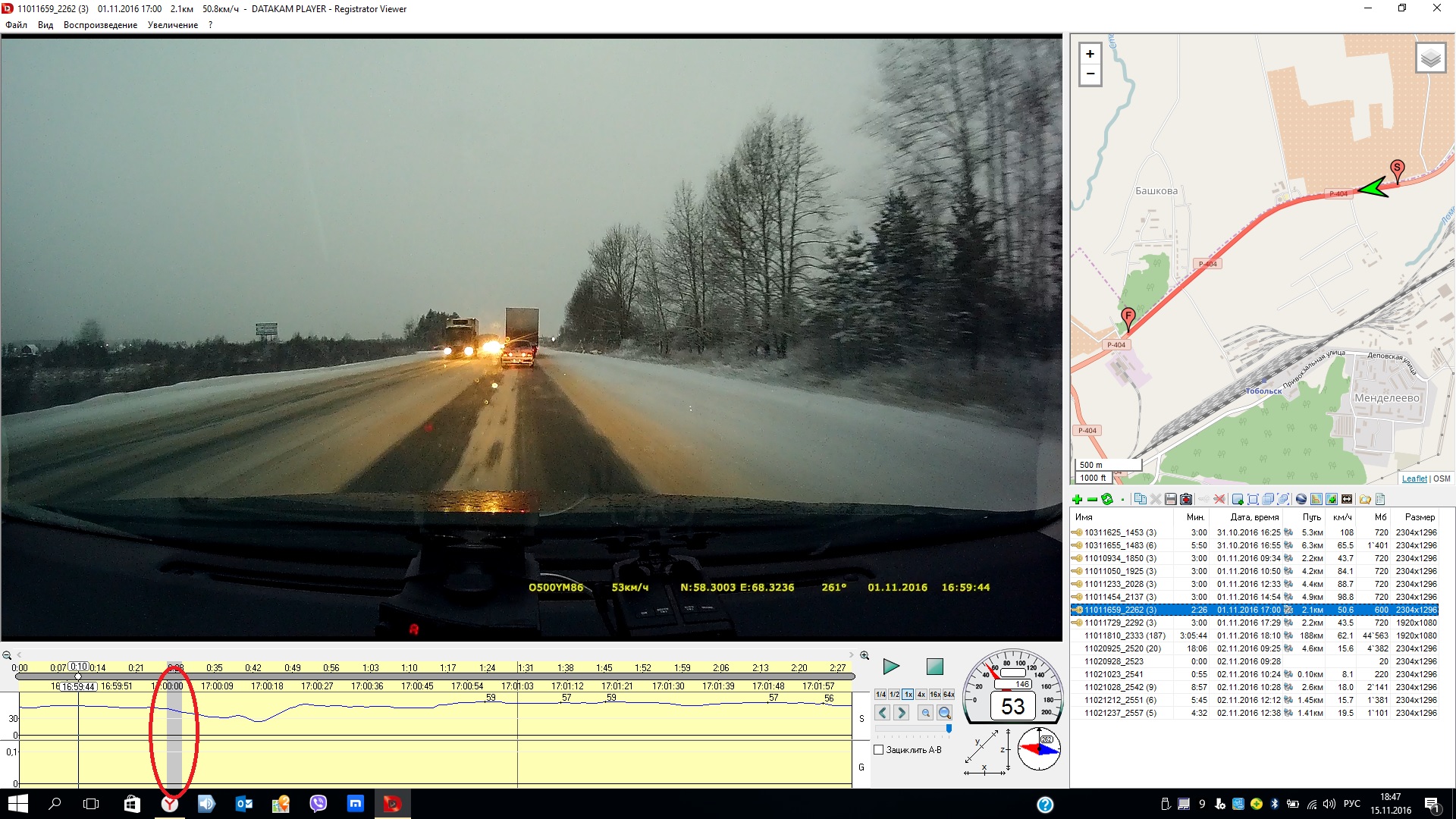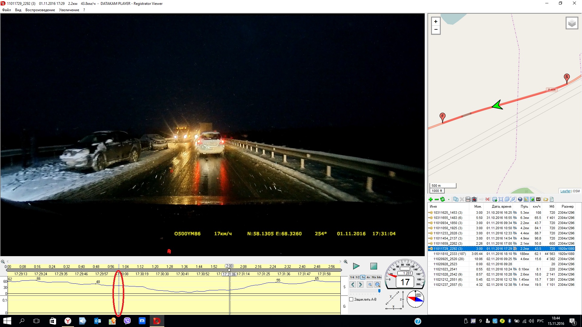 отображать маршрут на карте для регистраторов с приёмником GPS.