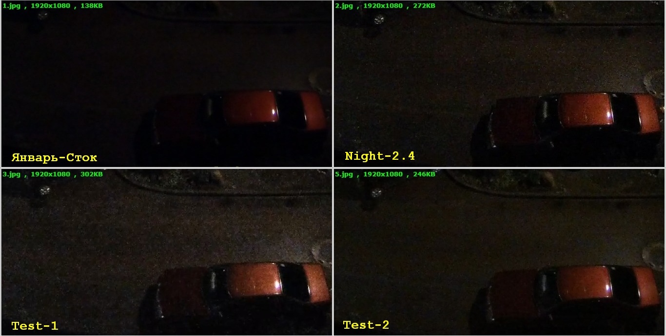 Картинка шумнее выходит и днём будут пересветы... Это прошивка с четвёртого скрина, проверил на контровый с экспо "-0.3"... Вроде в тенях важного ничего не потерялось...