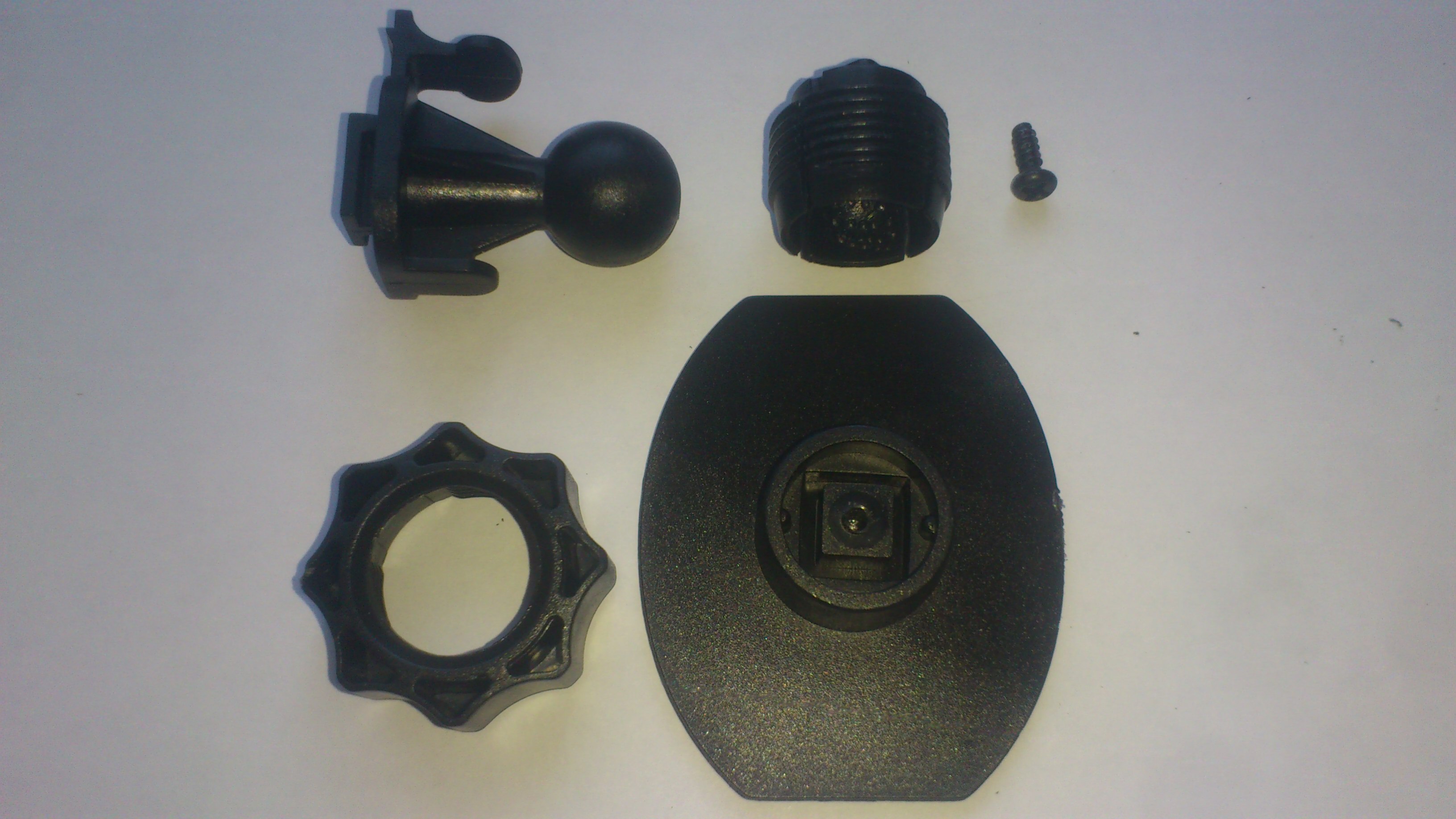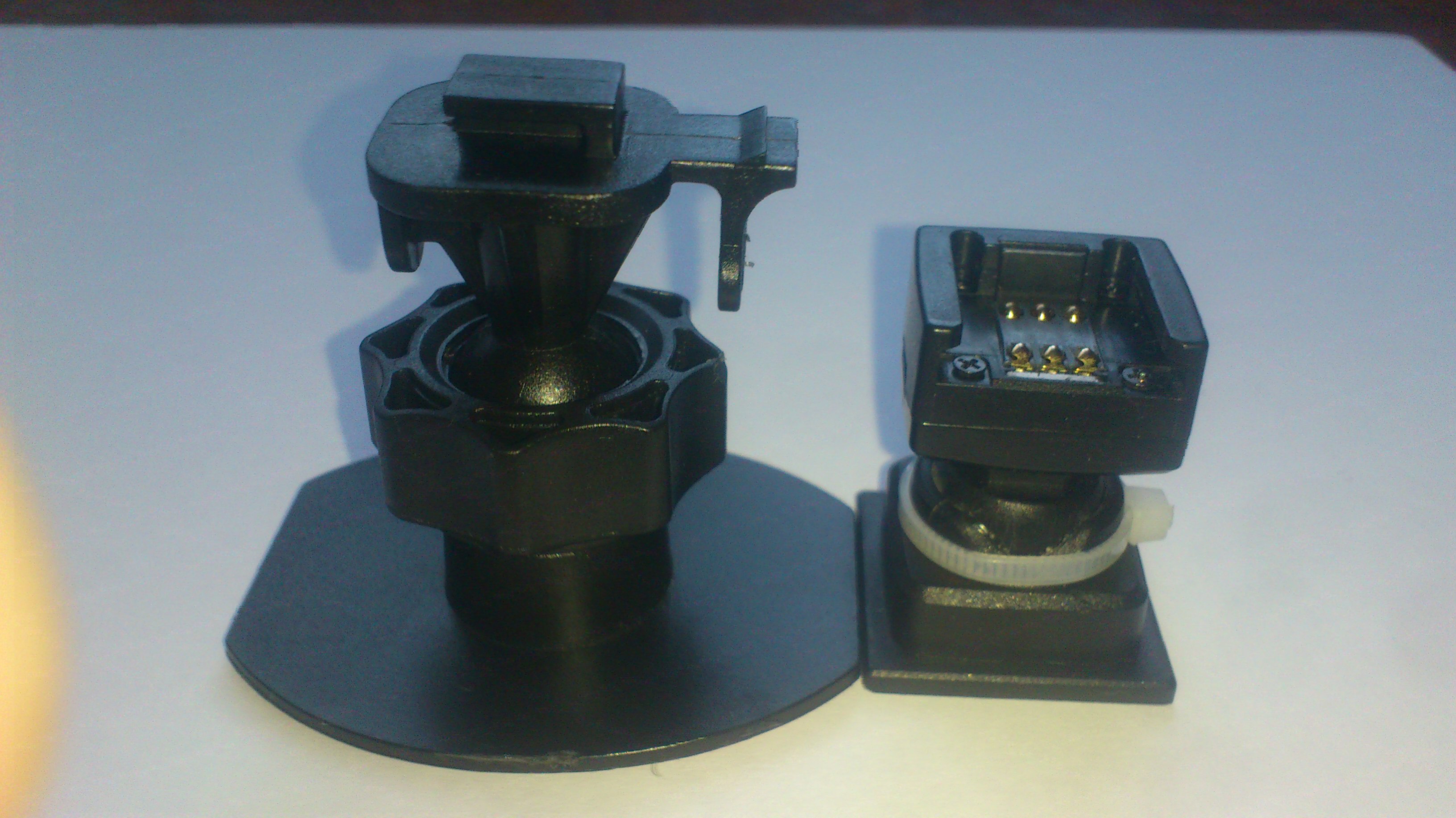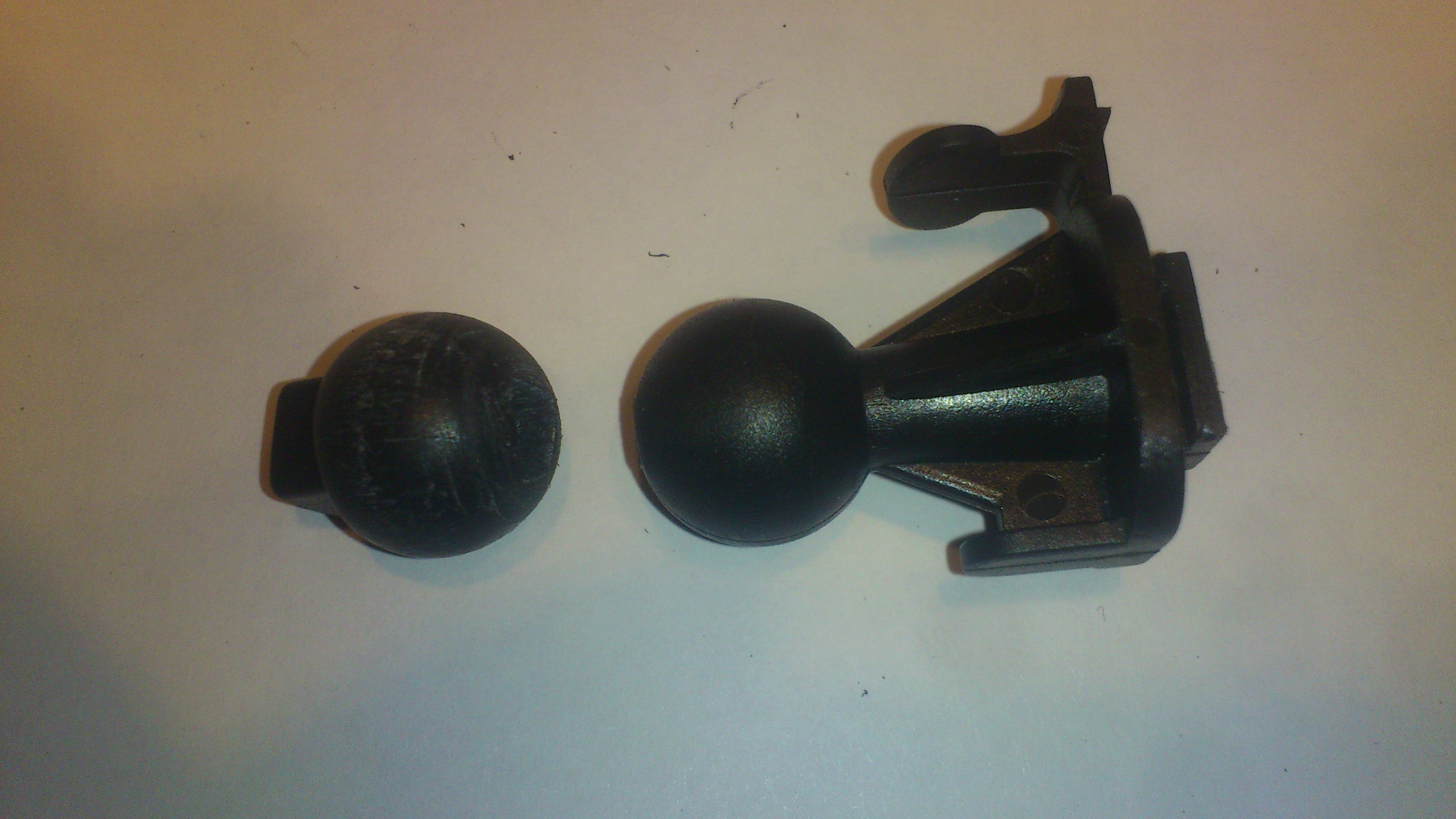 Приехало крепление для экспериментов... по сравнению со штатным выглядит громоздко. Оба крепления в разобранном виде: Шарики в креплениях имеют практически одинаковый размер. В штатном 15.3 мм, в китайском - 15.5 мм. Однако этого достаточно для того чтобы без подкладывания чего-либо в китайском креплении штатный шарик жестко не фиксировался. Два варианта (первый вариант с площадкой от присоски, второй с шариком и площадкой от крепления на липучке) использования китайского крепления: Площадку крепления подрезал до размера штатного. Однако его толщина меньше штатного. Спасла липучка на нем - за счет ее держится в штатной площадке крепко. Первый вариант получился громоздким... лично мне он не нравится. Второй вариант по габаритам тоже великоват, но над ним еще можно поработать - заменить основание китайского крепления. Это уменьшит размер крепления ~ на 1 см. Другая проблема второго вариант - маленький угол регулировки. На моей машине его чуть-чуть не хватило... т.к. у меня угол наклона лобового относительно небольшой. А к примеру, на классике будет совсем плохо. Но тут тоже есть мысли - можно фиксировать шарик к контактной площадке через шайбу... конструкция это позволяет. Короче буду дальше экспериментировать. ) На данный момент штатное крепление по компактности в очевидном выигрыше.