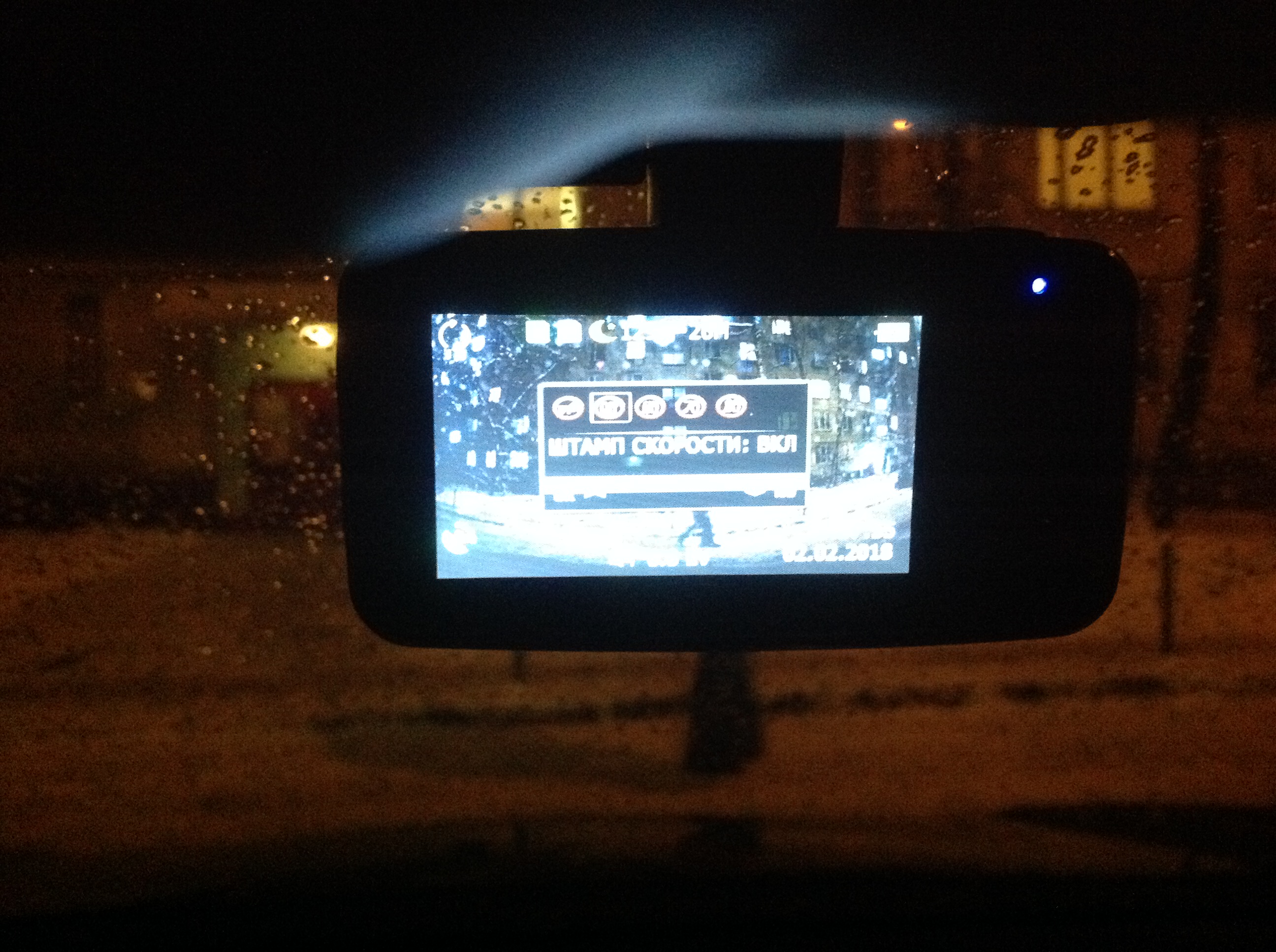 Вот сейчас индикатор заряда на регистраторе в зеленом цвете Сделал фото с экрана регистратора , поставил в меня : штамп скорости вкл , квадратик на " off" , без знаков скорости . Попробую посмотреть по прибытию домой , что получится .