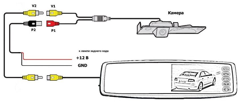Там красный-только для подачи питания на камеру заднего вида при включении заднего хода, а минус может в удлиннителе после разветвителя где вывели? Там же схема простейшая. Надо от камеры смотреть по проводам, в первом разьеме (от камеры) точно должен идти, а потом в разветвителе смотреть