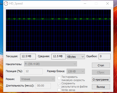 HD Speed Rus - Утилита для тестирования скорости чтения/записи практически любого устройства для хранения информации (HDD, CD-ROM, Flash-drive, floppy и т.д.)